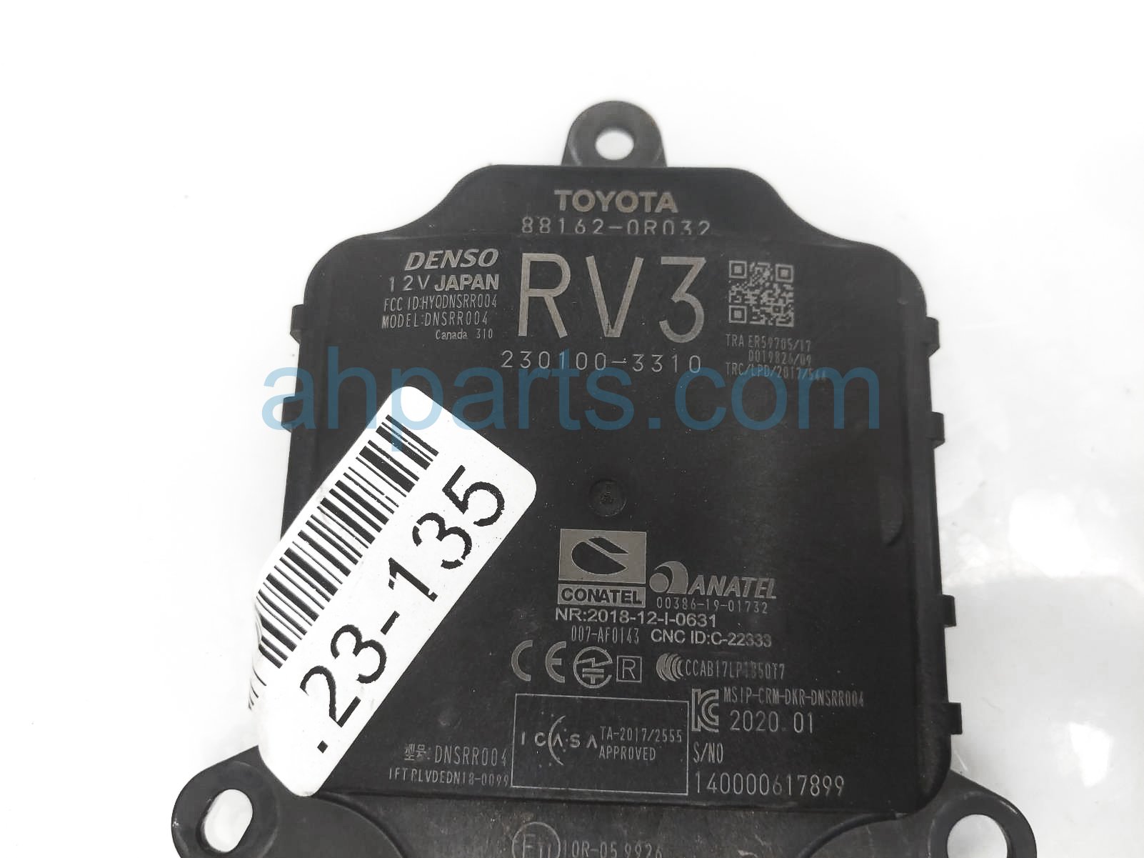 2020 Toyota RAV 4 rear passenger blind spot sensor module is a used item with a 1 year warranty. This OEM replacement rear passenger blind spot sensor module is genuine and has part numbers 88162-0R033, 881620R033, 88162-0R032, and 881620R032. This Toyota part sells for $75.