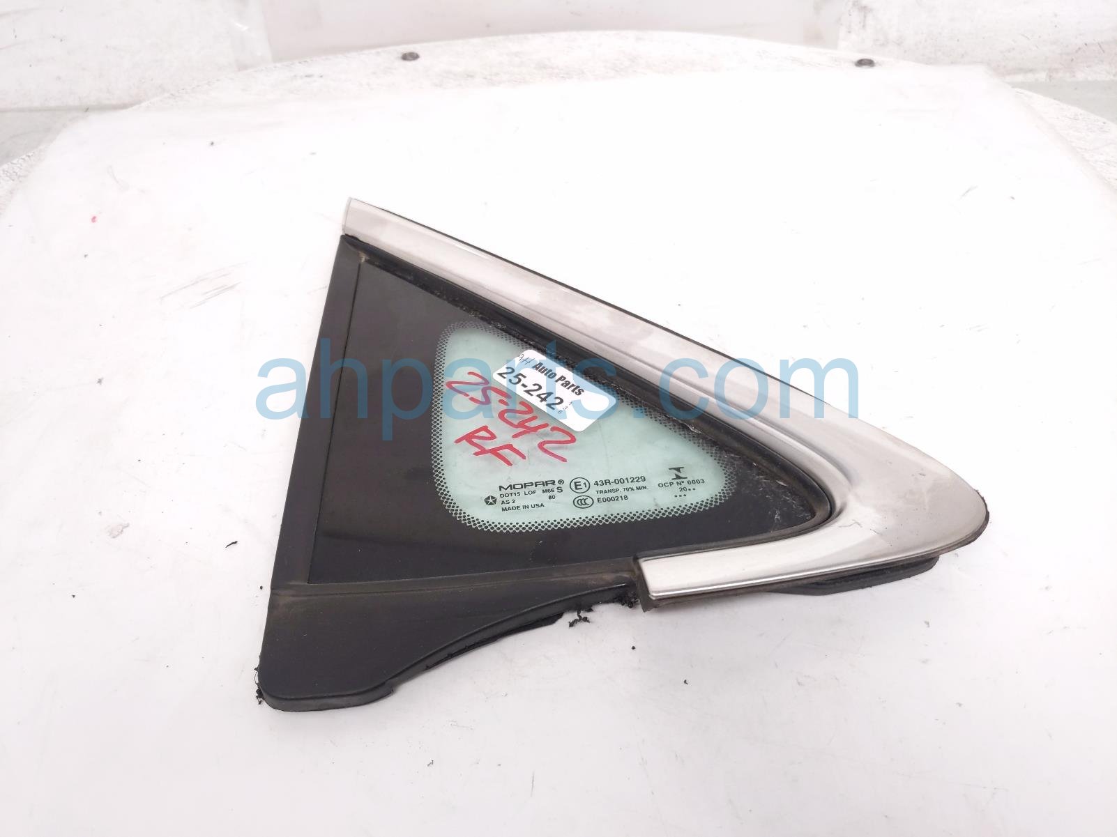 2021 Chrysler Pacifica front door windows front passenger vent glass window is a used item with a 1 year warranty. This OEM replacement front door windows front passenger vent glass window is genuine and has part numbers 68227746AE. This Chrysler part sells for $150.
