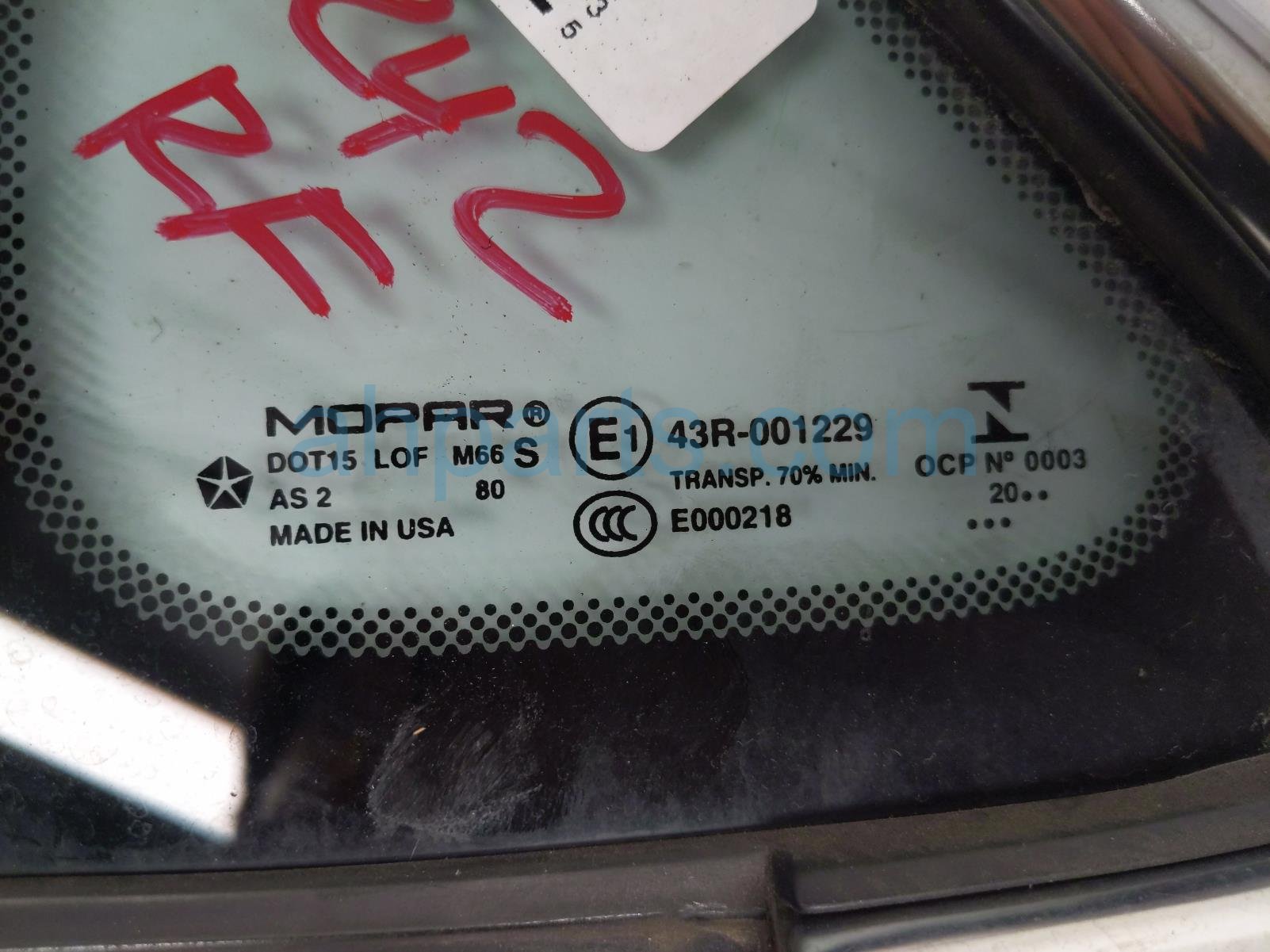 - Quarter Window Glass, Right - Mopar (68227746AE)