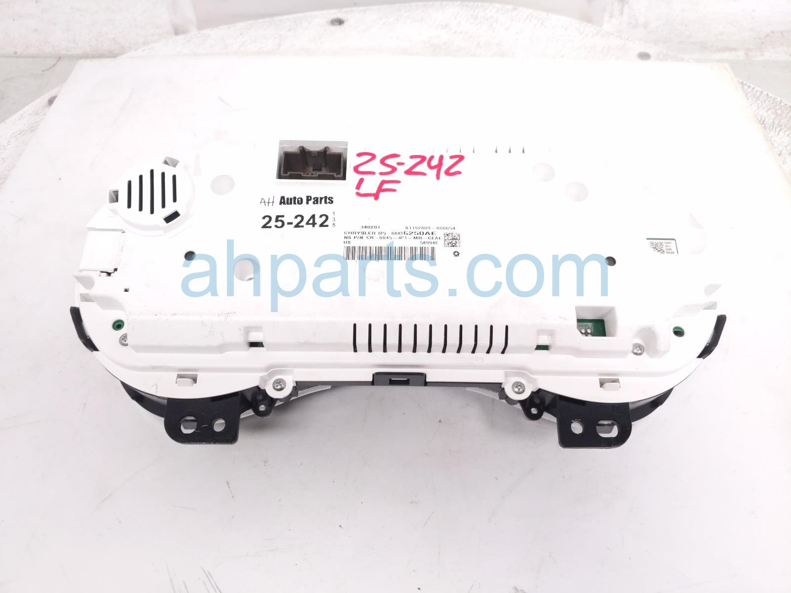 2021 Chrysler Pacifica instrument gauge speedometer cluster = 99k miles is a used item with a 1 year warranty. This OEM replacement instrument gauge speedometer cluster = 99k miles is genuine and has part numbers 68436250AD, and 68309544AA. This Chrysler part sells for $149. This item has the following note: 'This item has light scuffs/scratches.'