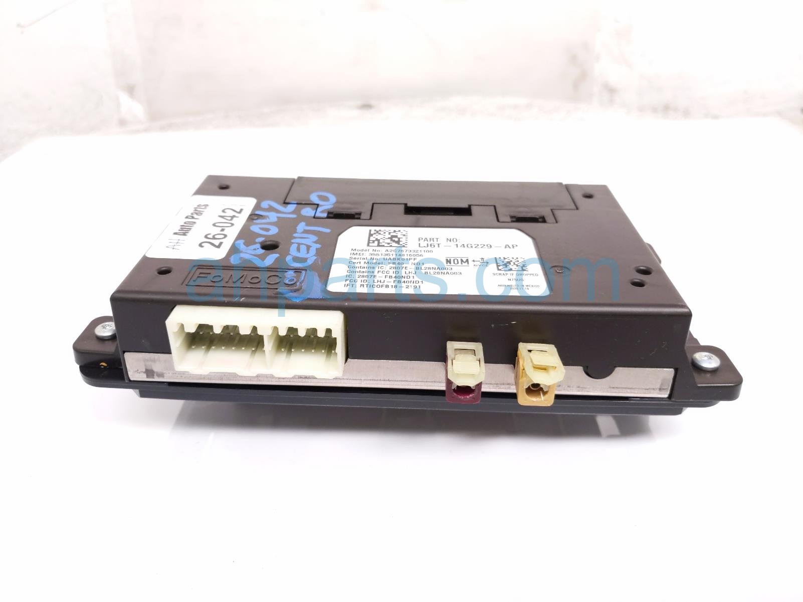 2021 Ford Broncospt telematics communication module is a used item with a 1 year warranty. This OEM replacement telematics communication module is genuine and has part numbers LJ6T-14G229-AP, LJ6T14G229AP, LJ6Z-14G229-A, and LJ6Z14G229A. This Ford part is for sale (please call for pricing).