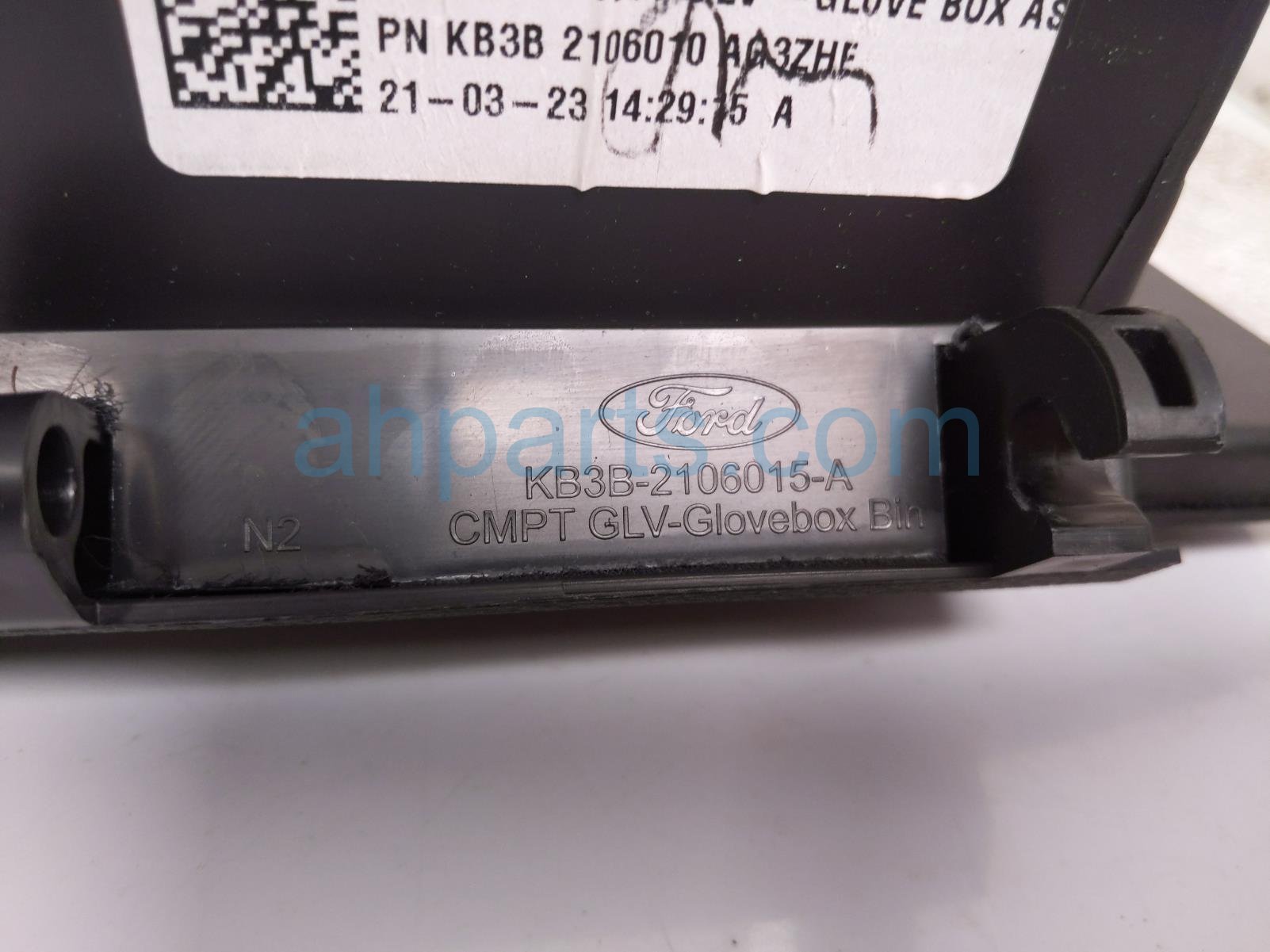 2021 Ford Ranger glove compartment box - black - is a used item with a 1 year warranty. This OEM replacement glove compartment box - black - is genuine and has part numbers KB3Z-2106010-AB, and KB3Z2106010AB. This Ford part is for sale (please call for pricing).