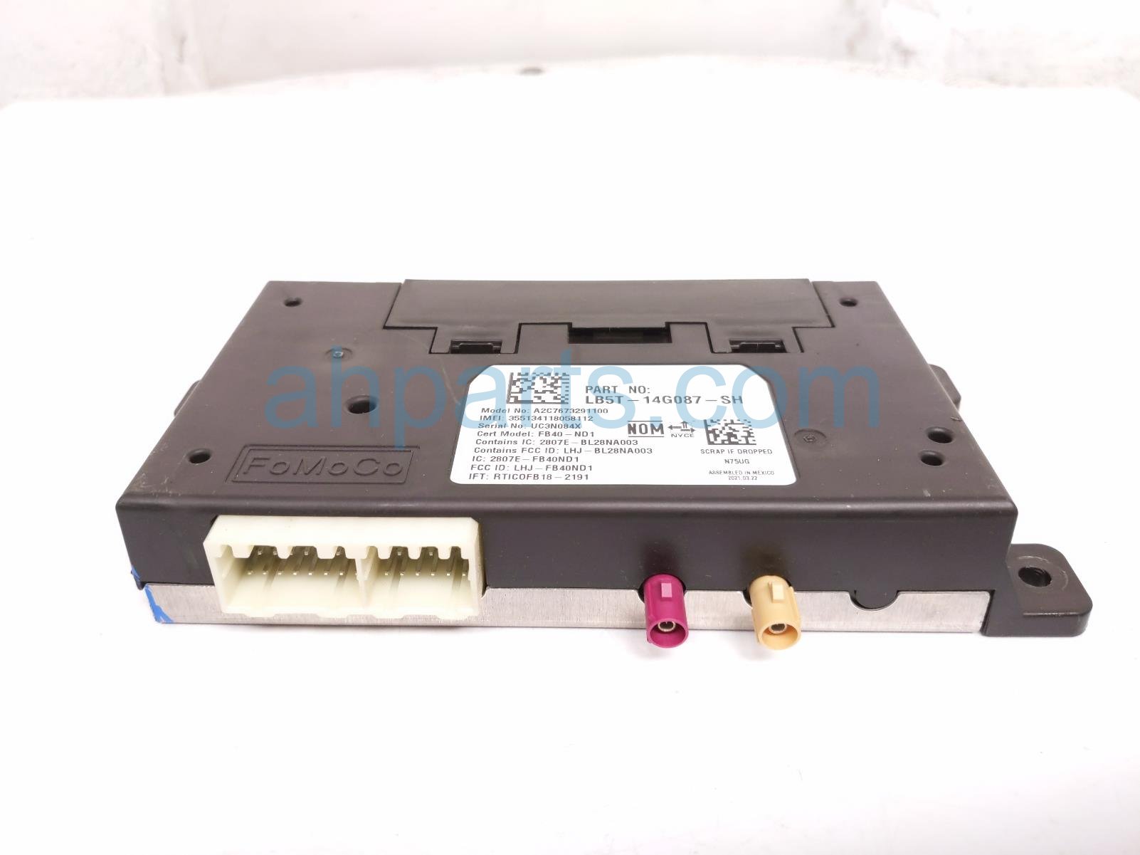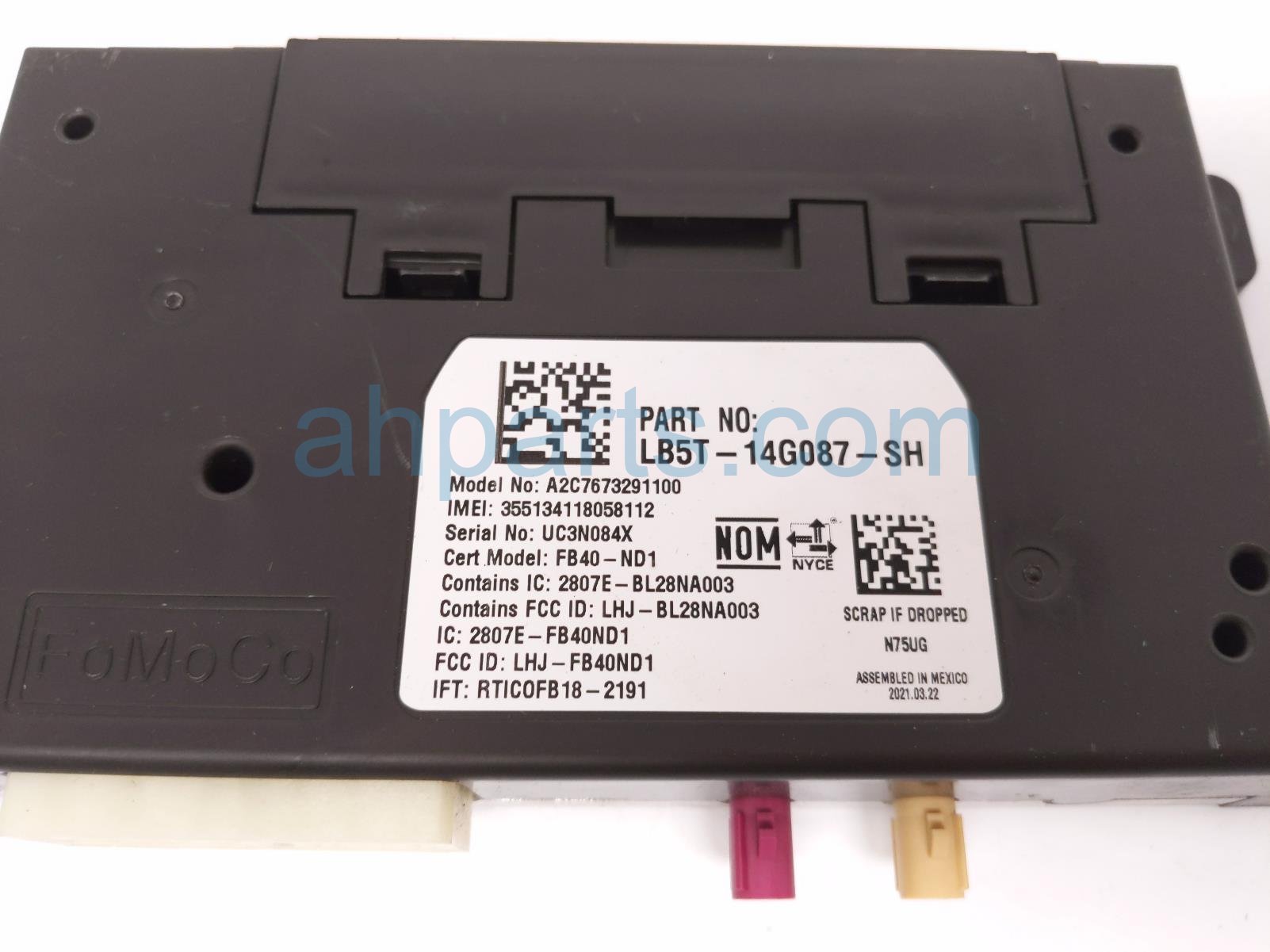 2021 Ford Ranger telematics control module is a used item with a 1 year warranty. This OEM replacement telematics control module is genuine and has part numbers LB5T-14G087-SH, LB5T14G087SH, NU5Z-14F546-EE, and NU5Z14F546EE. This Ford part is for sale (please call for pricing). This item has the following note: 'This item has a broken corner on the bottom left corner.'