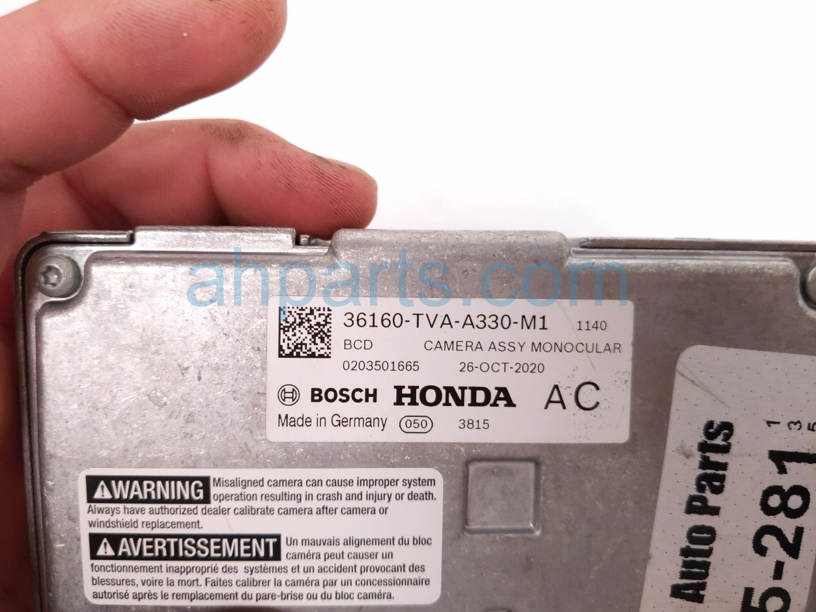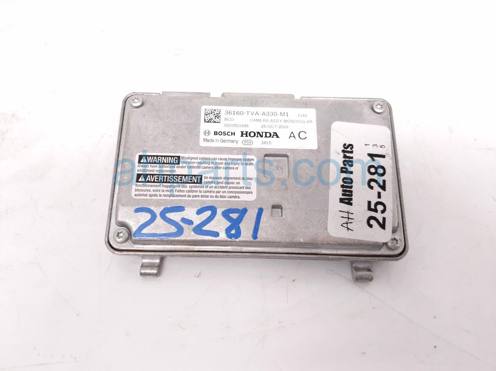 2021 Honda Accord front windshield monocular camera is a used item with a 1 year warranty. This OEM replacement front windshield monocular camera is genuine and has part numbers 36160-TVA-A33, and 36160TVAA33. This Honda part is for sale (please call for pricing).