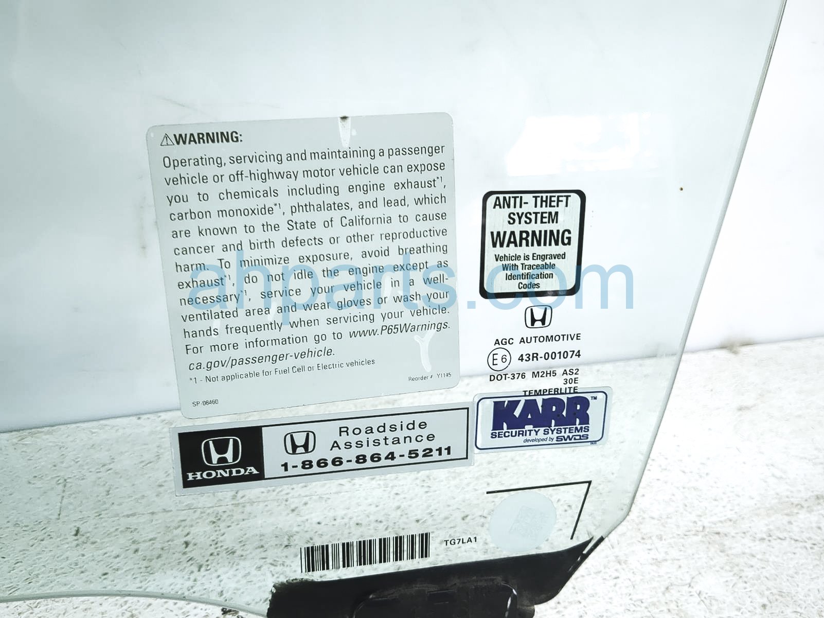 2021 Honda Passport front driver door glass window is a used item with a 1 year warranty. This OEM replacement front driver door glass window is genuine and has part numbers 73350-TG7-A00, and 73350TG7A00. This Honda part sells for $90.