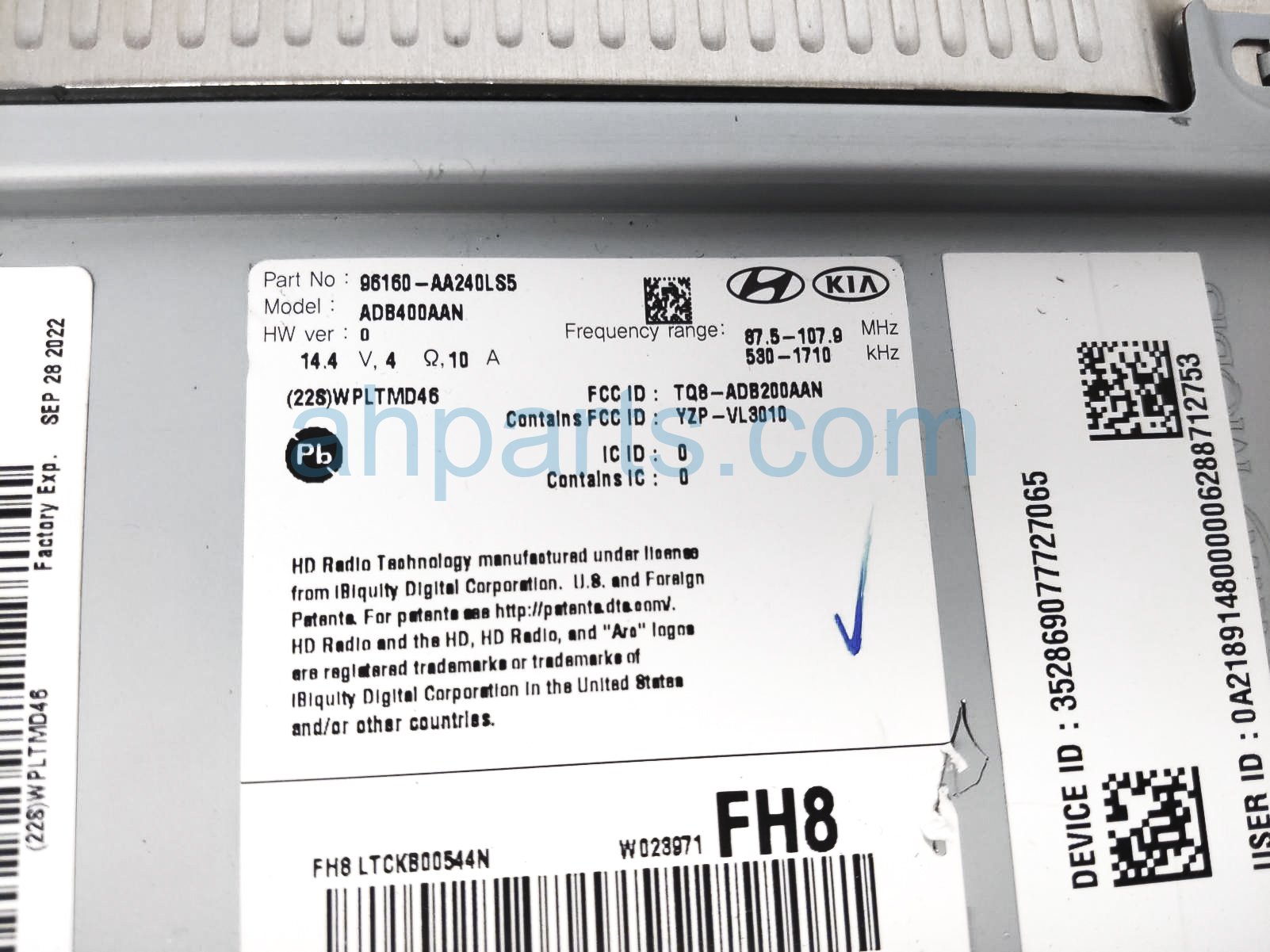 2021 Hyundai Elantra radio receiver w/o navi assy-8''inch is a used item with a 1 year warranty. This OEM replacement radio receiver w/o navi assy-8''inch is genuine and has part numbers 96160-AA240-LS5, and 96160AA240LS5. This Hyundai part sells for $250.