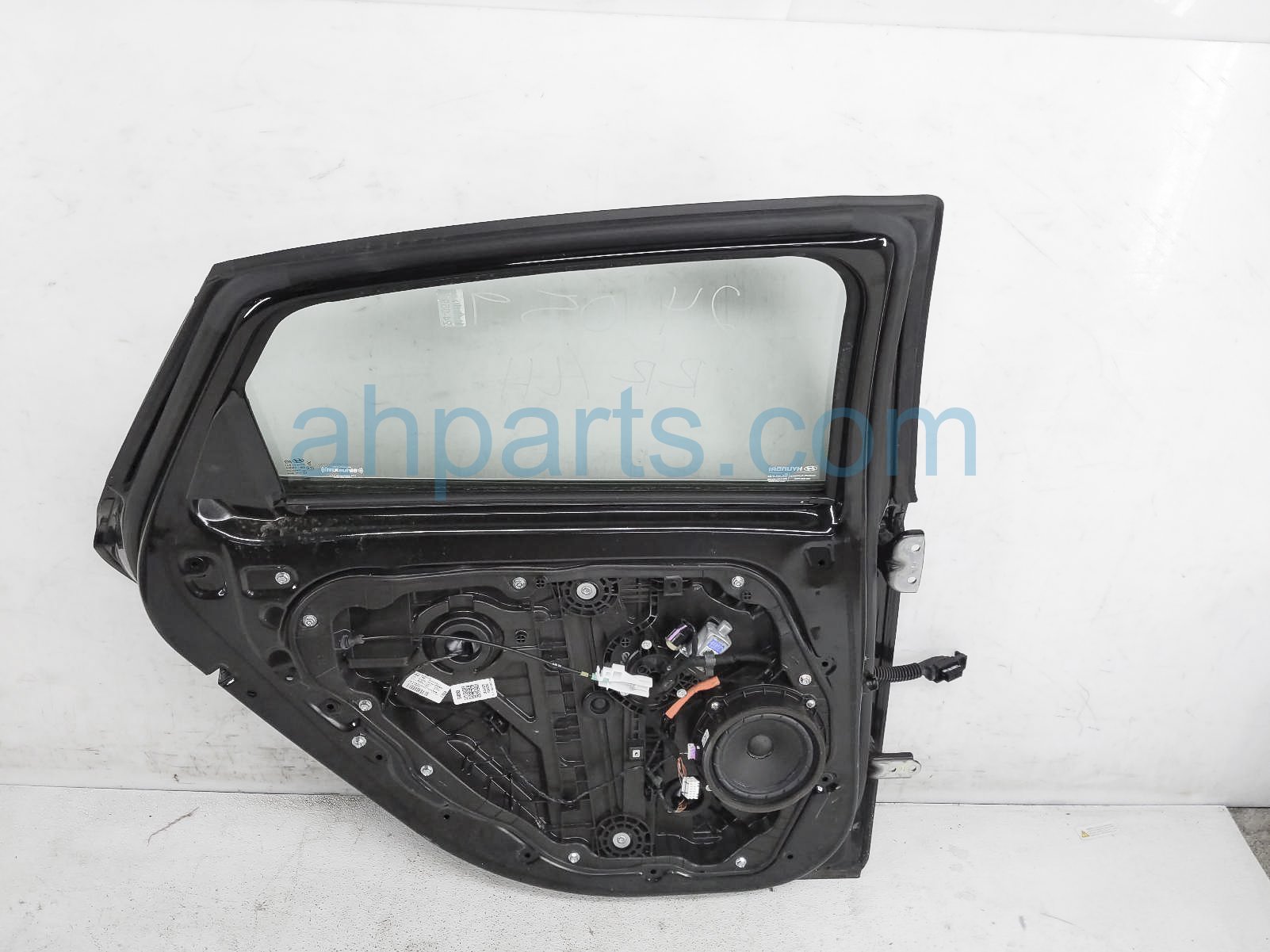 2021 Hyundai Sonata rear driver door - black - no inside trim* is a used item with a 1 year warranty. This OEM replacement rear driver door - black - no inside trim* is genuine and has part numbers 77003-L0000, and 77003L0000. This Hyundai part sells for $999. This item has the following note: 'This item has a paint chip above the door handle and a ding near the door handle - grade b.'