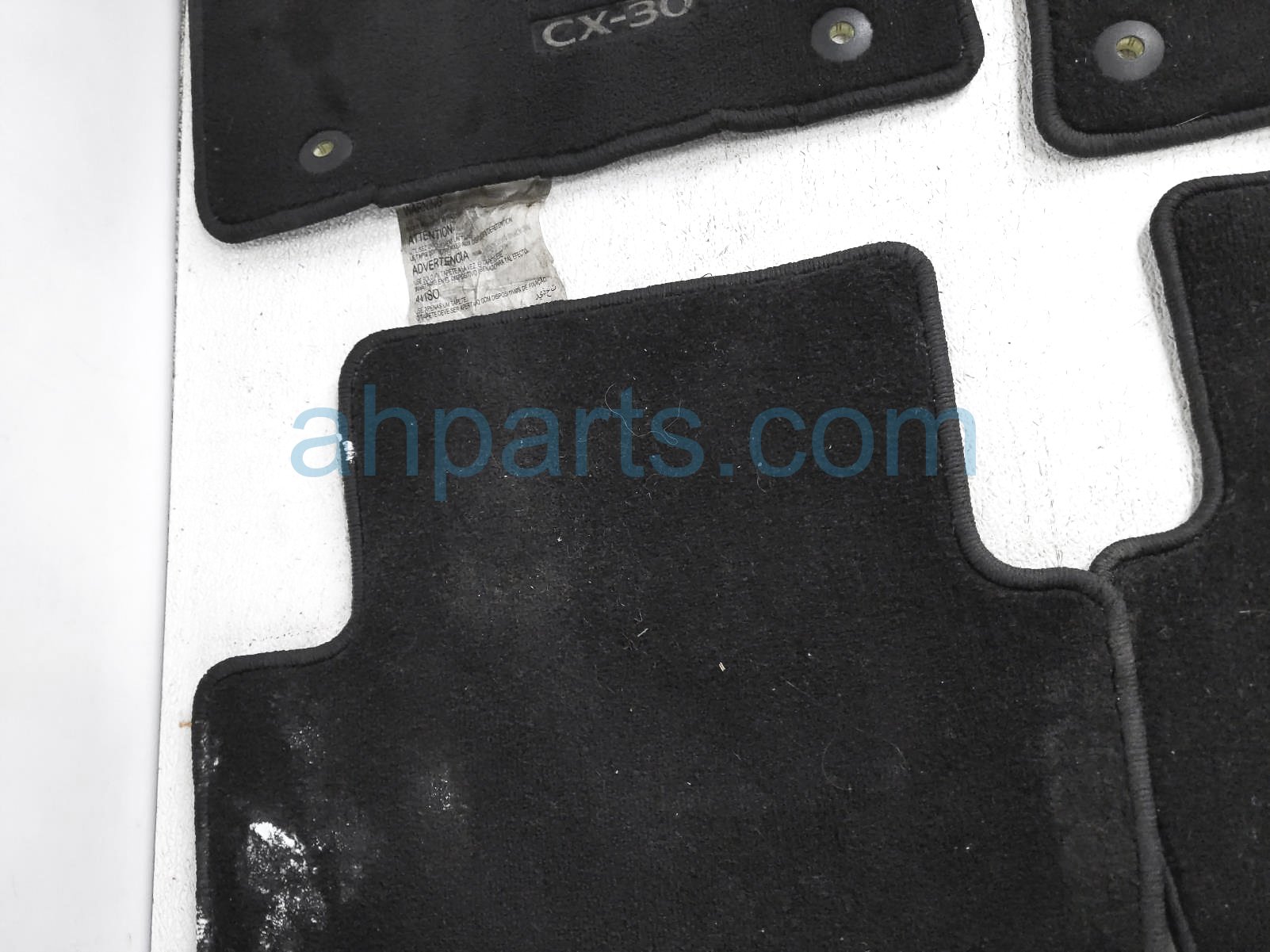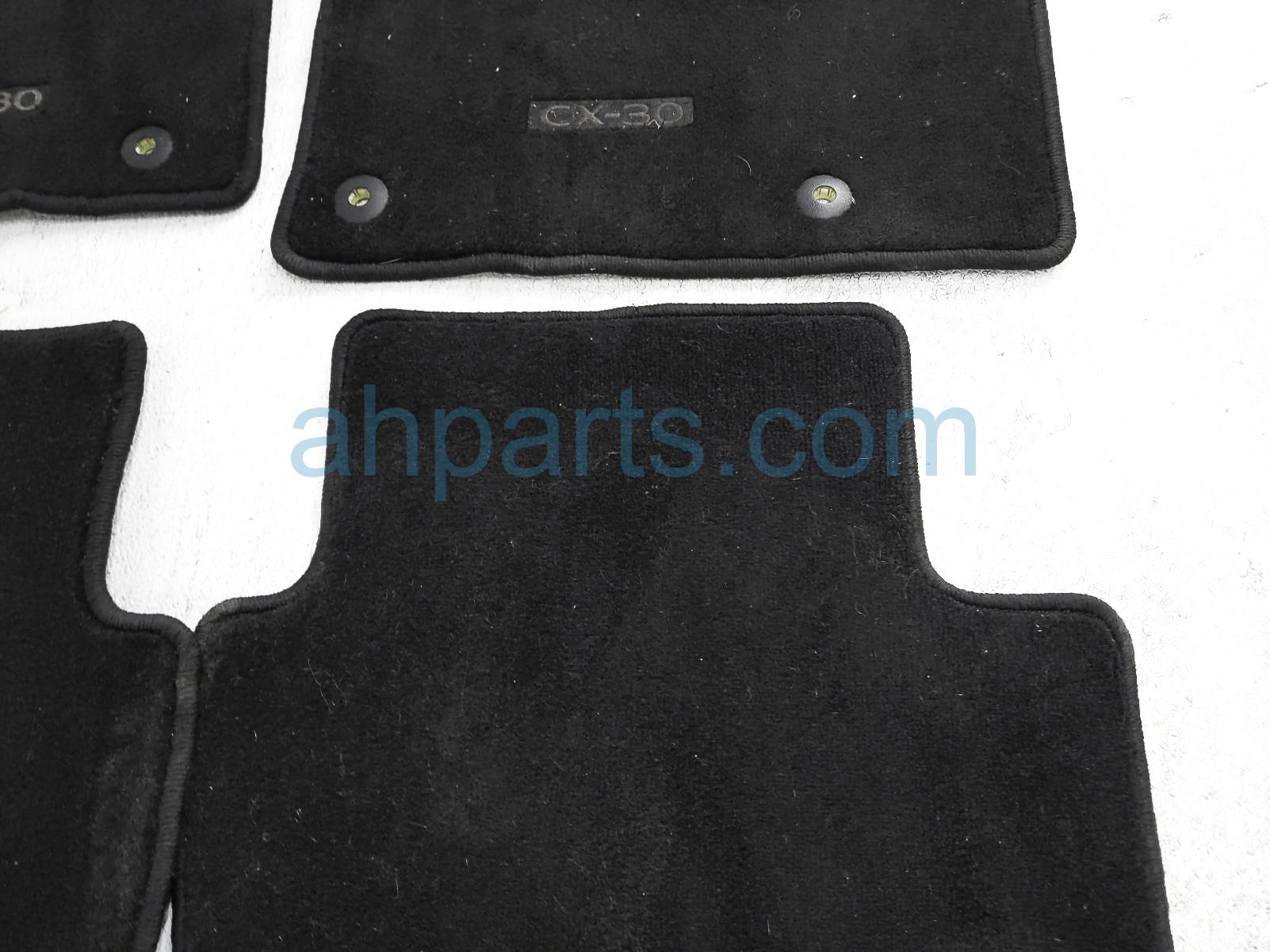 2021 Mazda CX-30 set of 4 floor mats - blk cloth is a used item with a 1 year warranty. This OEM replacement set of 4 floor mats - blk cloth is genuine. This Mazda part sells for $65. This item has the following note: 'Floor mats are dirty - grade b.'