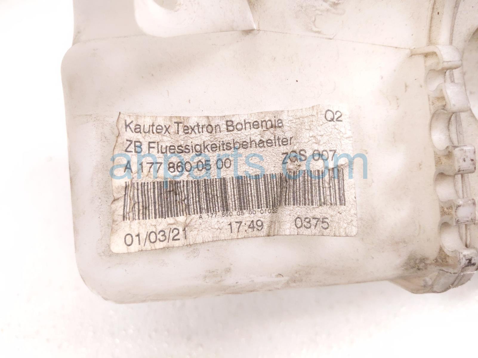 2021 Mercedes A220 windshield washer reservoir tank is a used item with a 1 year warranty. This OEM replacement windshield washer reservoir tank is genuine and has part numbers 177-869-01-00, and 1778690100. This Mercedes part sells for $75.