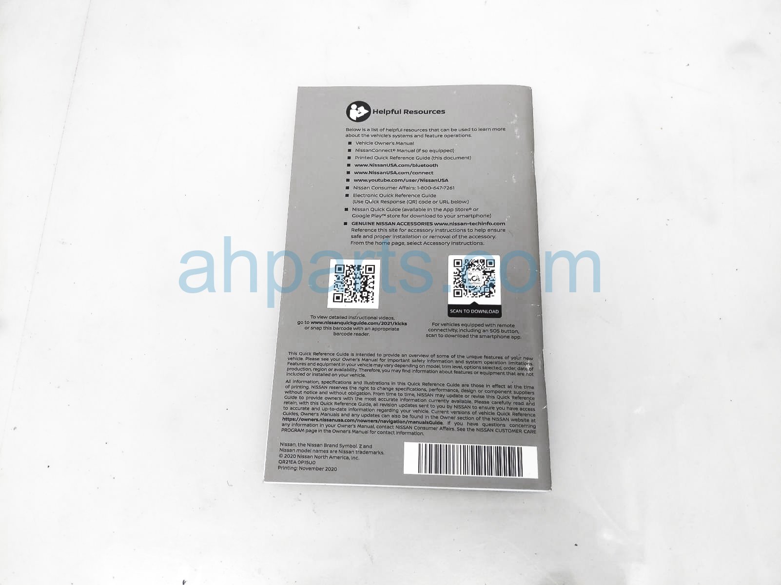 2021 Nissan Kicks owners manual handbooks w/pouch is a used item with a 1 year warranty. This OEM replacement owners manual handbooks w/pouch is genuine. This Nissan part sells for $25. This item has the following note: '[loa].'