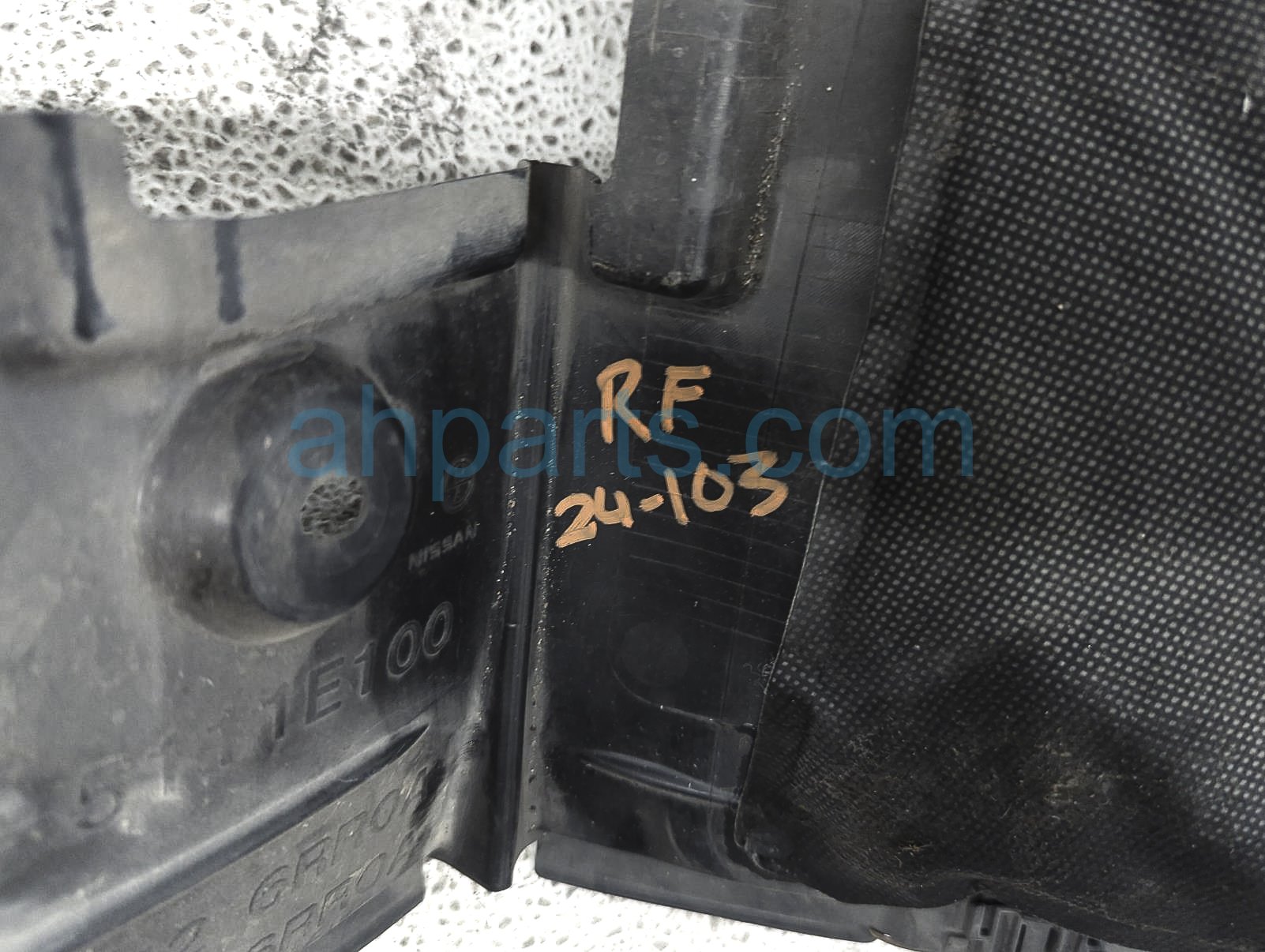 2021 Nissan Rogue front passenger inner fender liner is a used item with a 1 year warranty. This OEM replacement front passenger inner fender liner is genuine and has part numbers 63840-6RR0A, and 638406RR0A. This Nissan part sells for $50.