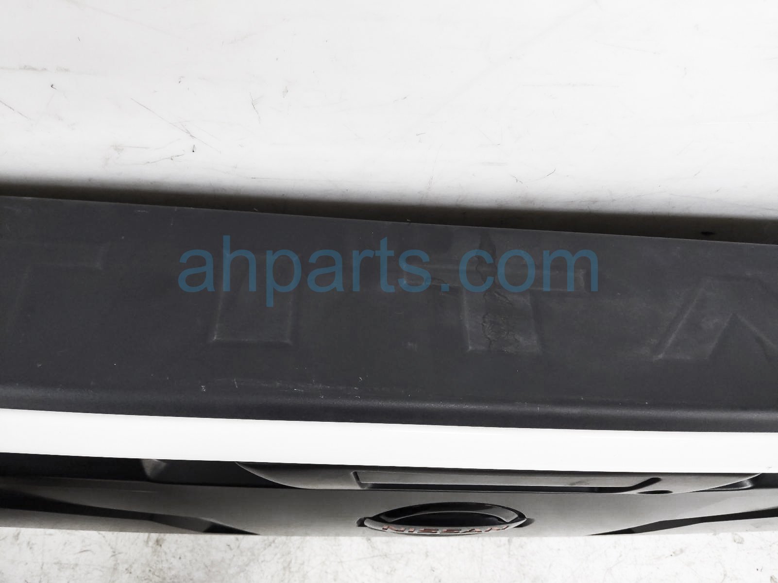 2021 Nissan Titan deck trunk lid lift gate / tail gate - white is a used item with a 1 year warranty. This OEM replacement deck trunk lid lift gate / tail gate - white is genuine and has part numbers 93400-9FT2A, 934009FT2A, 90606-EZ08B, 90606EZ08B, 93041-9FT0A, and 930419FT0A. This Nissan part sells for $1495. This item has the following note: 'This item has one scuff mark near the top right and has scuffs on top of the black trim - grade b.'