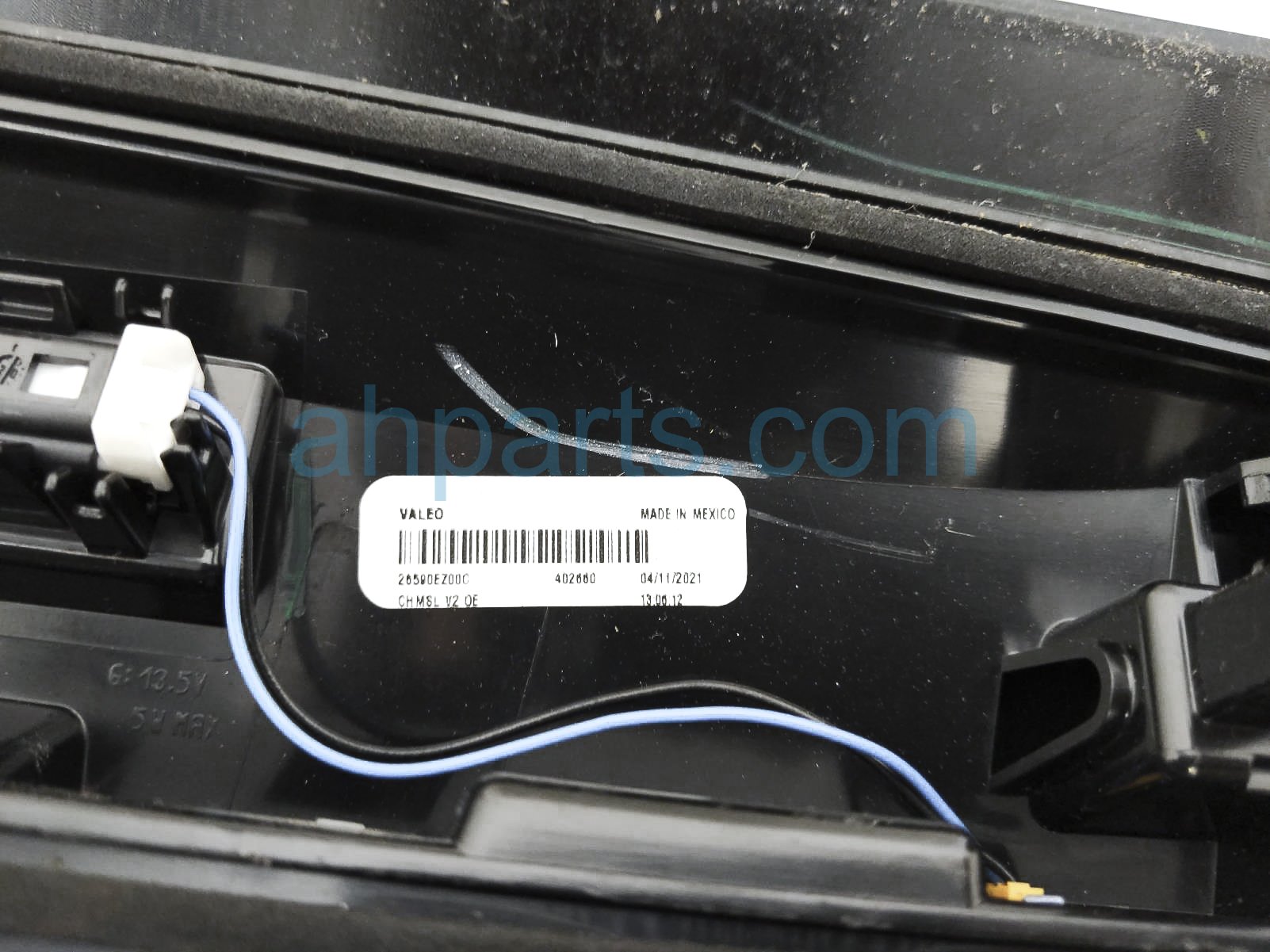 2021 Nissan Titan high mounted center / lamp third brake light assy - is a used item with a 1 year warranty. This OEM replacement high mounted center / lamp third brake light assy - is genuine and has part numbers 26590-EZ00C, and 26590EZ00C. This Nissan part sells for $100. This item has the following note: 'This item has a crack across the light and scuffs on the top - grade c.'