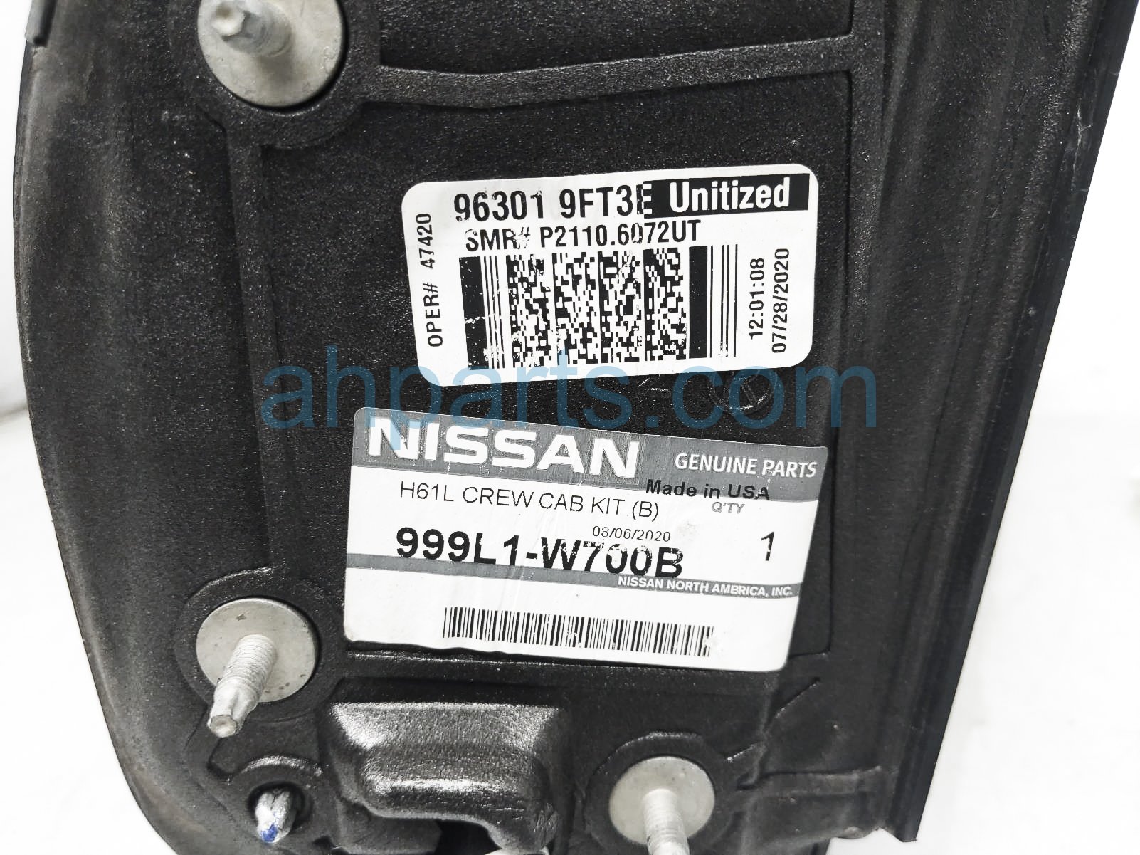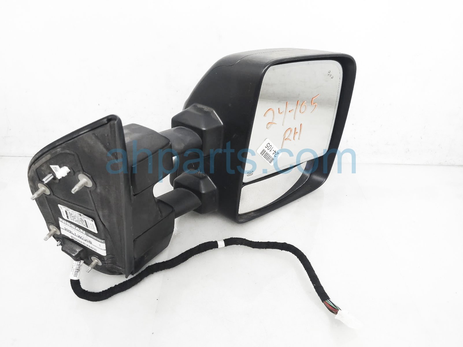 2021 Nissan Titan rear passenger side view mirror - black is a used item with a 1 year warranty. This OEM replacement rear passenger side view mirror - black is genuine and has part numbers 96301-9FT3E, 963019FT3E, 999L1-W700B, 999L1W700B, 96373-EZ10A, and 96373EZ10A. This Nissan part sells for $599. This item has the following note: 'This item has minor scuffs on the bottom of the cover - grade a.'