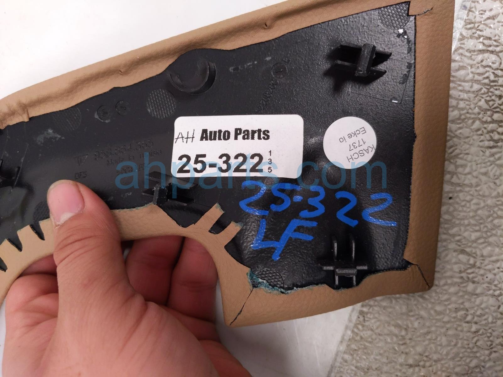 2021 Porsche Macan driver console side trim panel - tan is a used item with a 1 year warranty. This OEM replacement driver console side trim panel - tan is genuine and has part numbers 95B-864-365-A-OT5, and 95B864365AOT5. This Porsche part sells for $25.