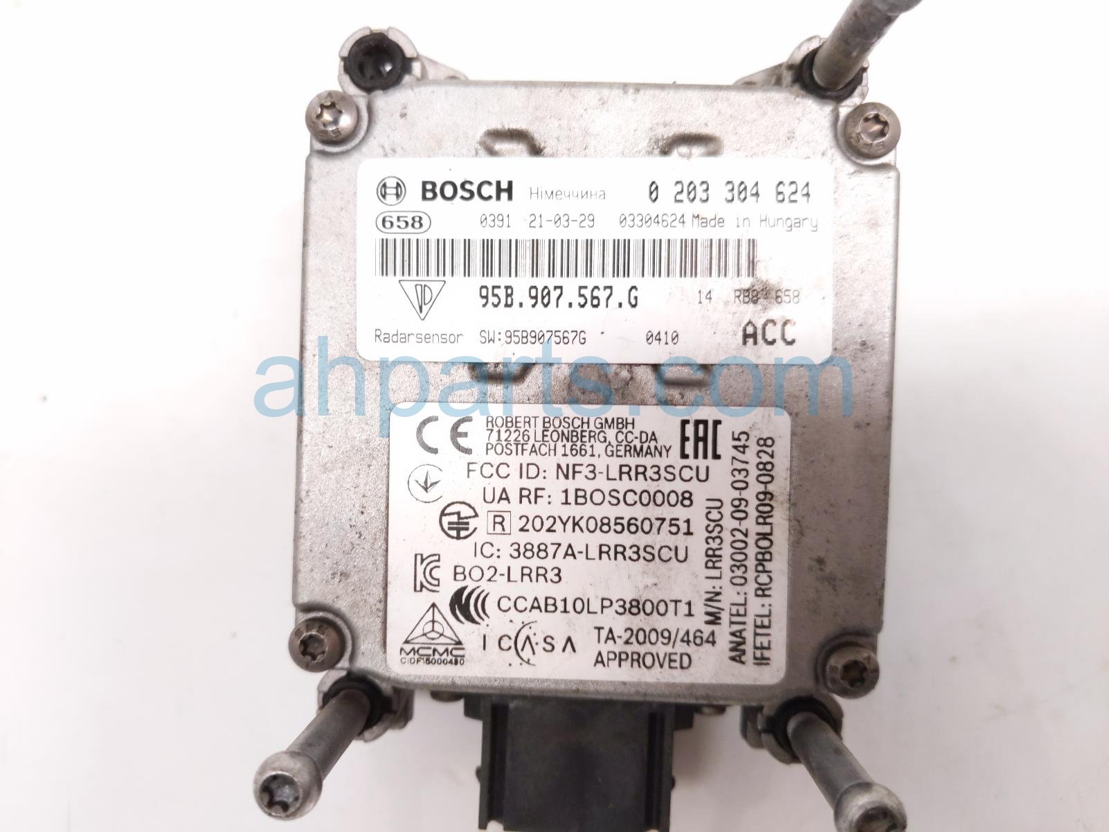 2021 Porsche Macan front adaptive cruise radar unit is a used item with a 1 year warranty. This OEM replacement front adaptive cruise radar unit is genuine and has part numbers 95B-907-567-G, and 95B907567G. This Porsche part is for sale (please call for pricing).