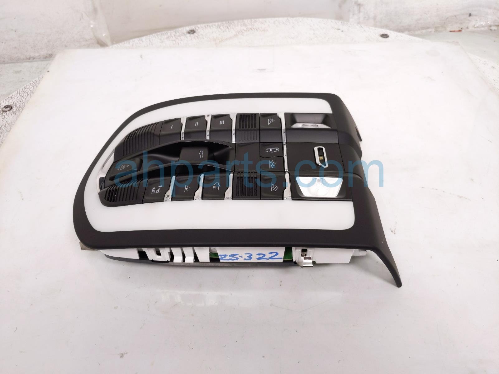 2021 Porsche Macan roof console / map lt w/sun - blk is a used item with a 1 year warranty. This OEM replacement roof console / map lt w/sun - blk is genuine and has part numbers 958-868-404, 958868404, 7PP-919-317-0A6, and 7PP9193170A6. This Porsche part sells for $70.