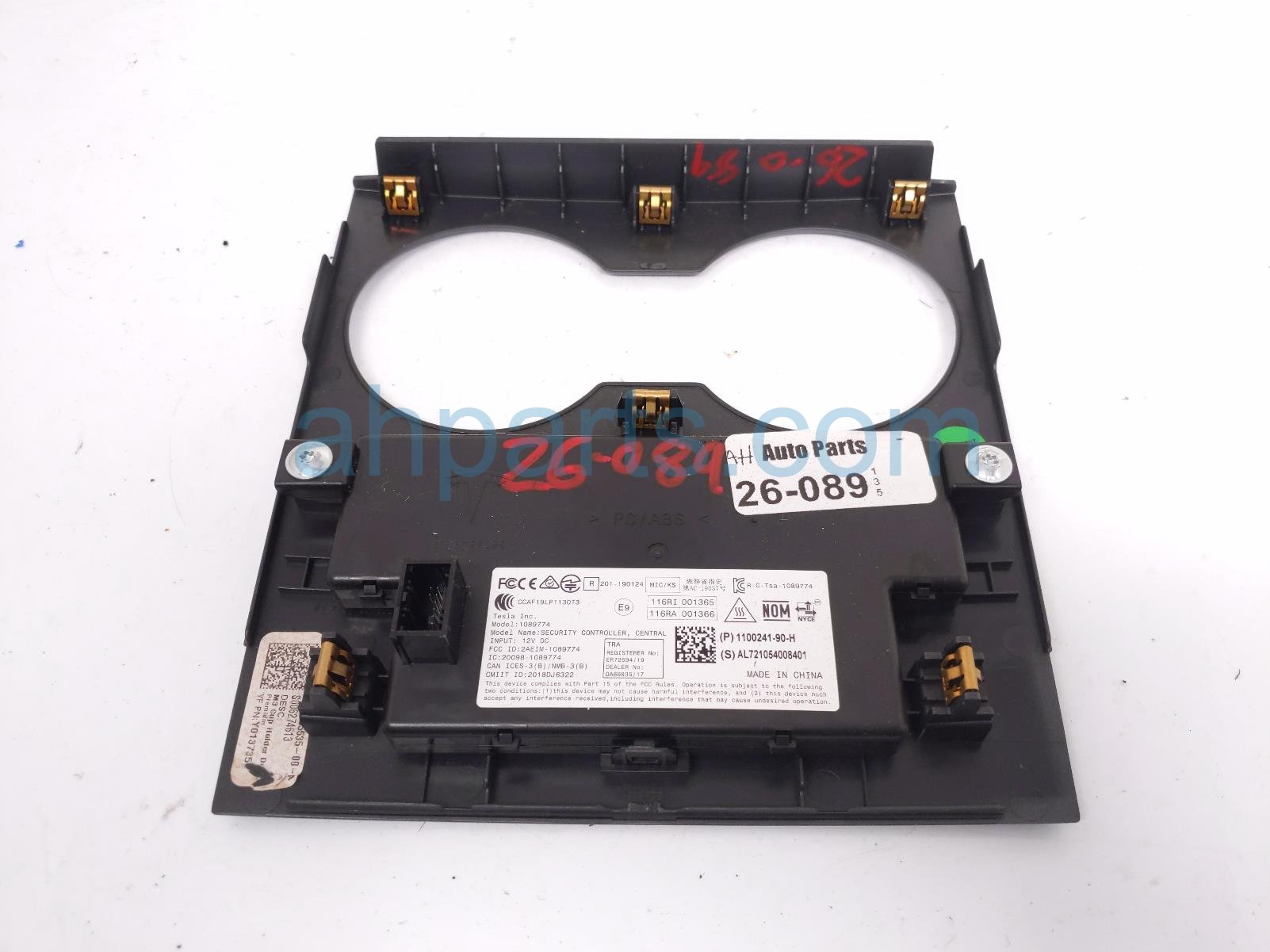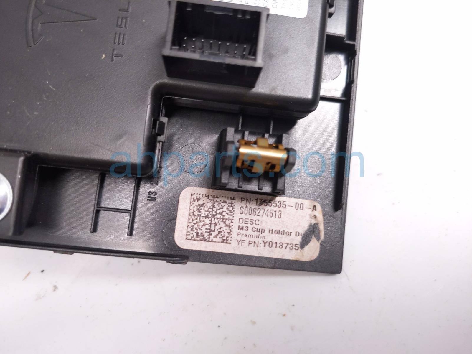 2021 Tesla Model Y center console cup hld assy -blk is a used item with a 1 year warranty. This OEM replacement center console cup hld assy -blk is genuine and has part numbers 1755535-00-A, 175553500A, 1100241-90-H, and 110024190H. This Tesla part is for sale (please call for pricing).