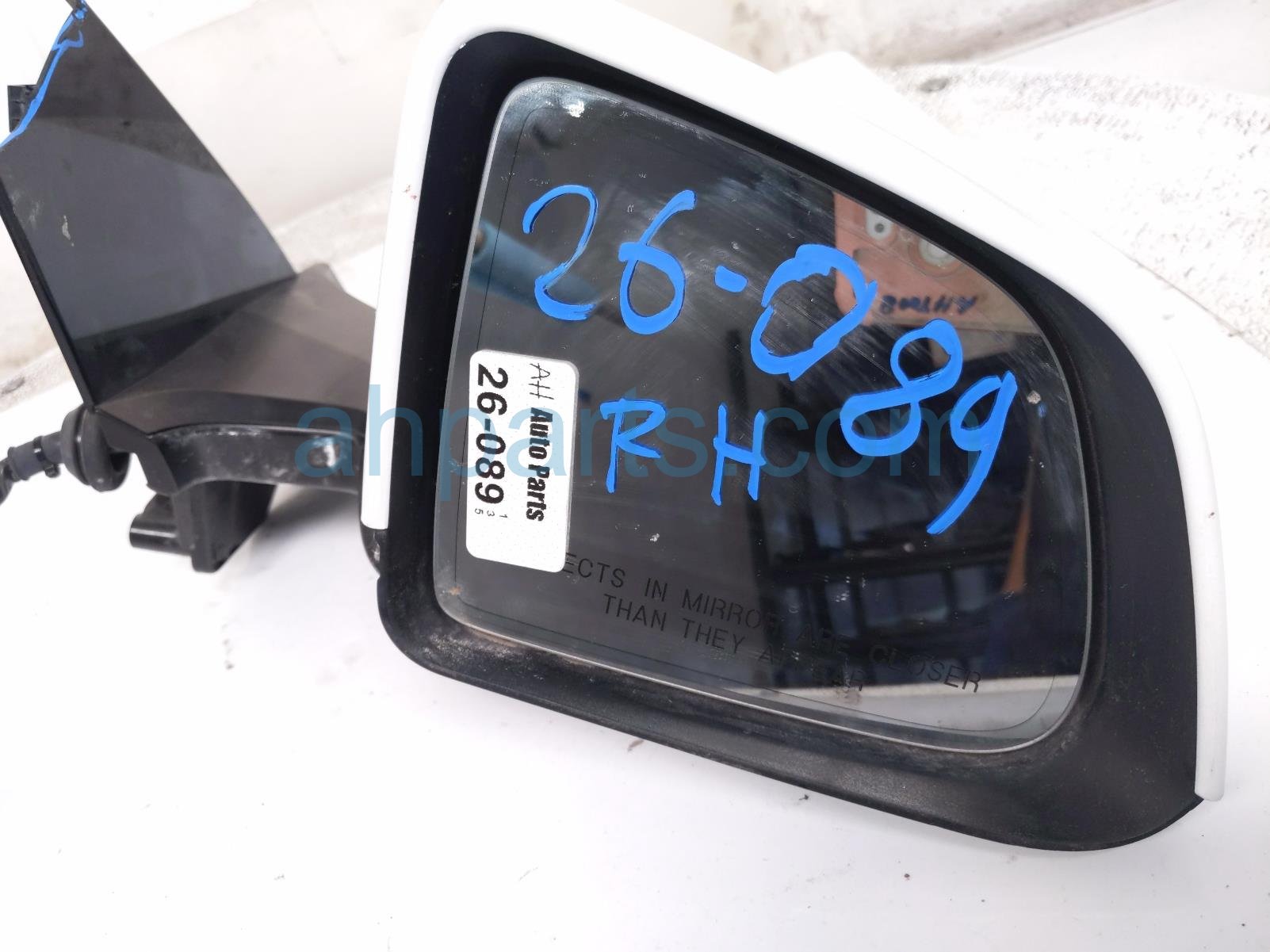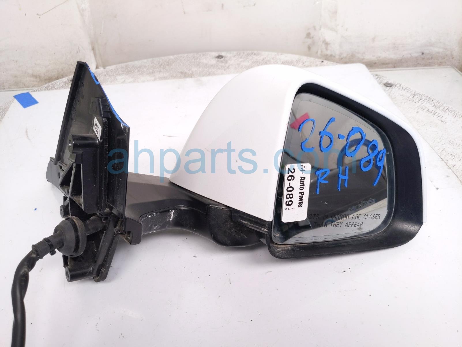 2021 Tesla Model Y rear passenger side view mirror - white is a used item with a 1 year warranty. This OEM replacement rear passenger side view mirror - white is genuine and has part numbers 1594112-00-B, 159411200B, 1615883-00-A, 161588300A, 1495594-00-A, and 149559400A. This Tesla part is for sale (please call for pricing). This item has the following note: 'Cracked mount cover.'