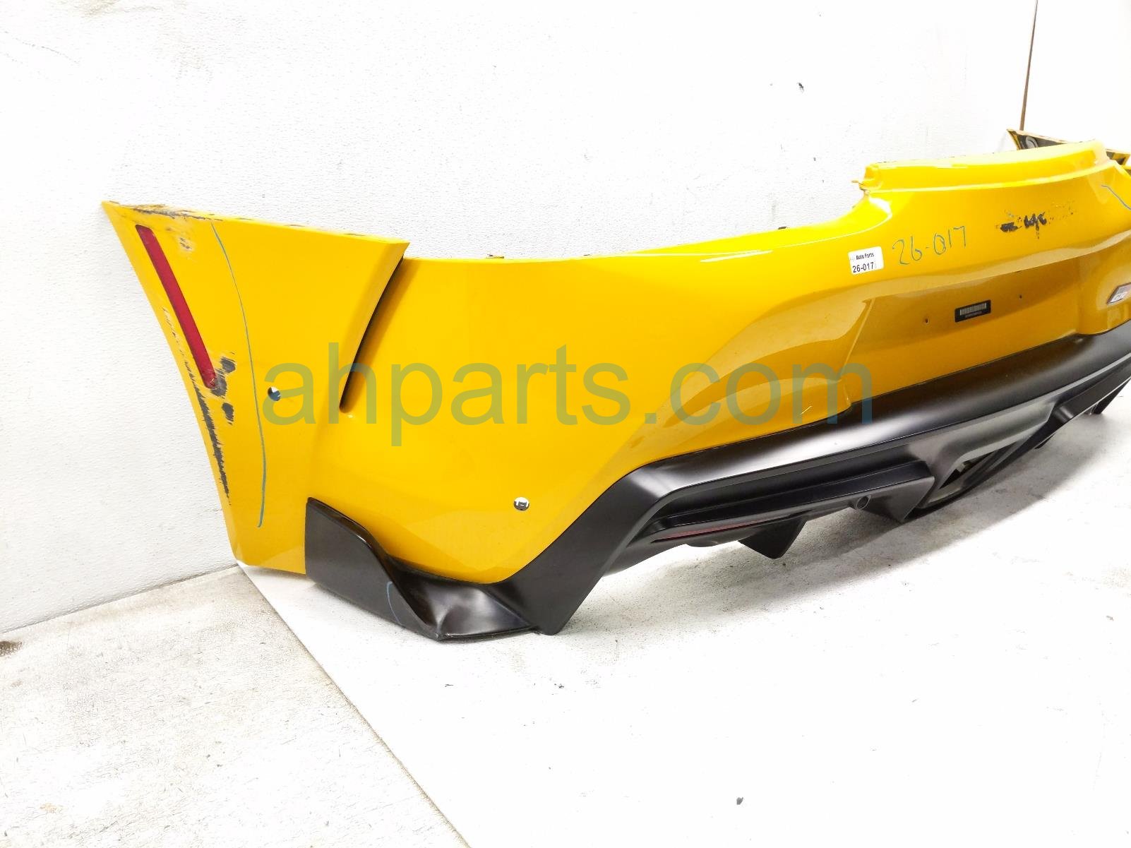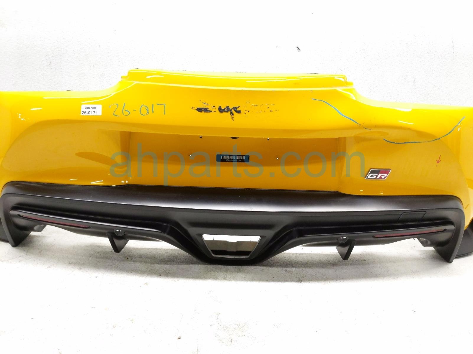 2021 Toyota GR Supra rear bumper cover - yellow is a used item with a 1 year warranty. This OEM replacement rear bumper cover - yellow is genuine and has part numbers 52159-WAA06, 52159WAA06, 52108-WAA02, and 52108WAA02. This Toyota part is for sale (please call for pricing).