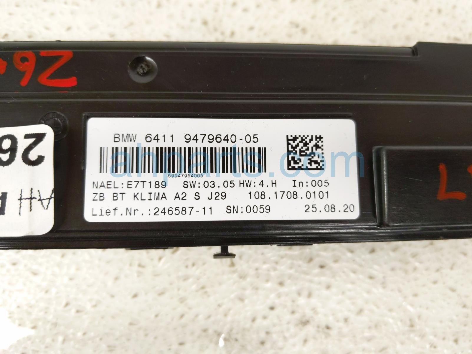 2021 Toyota GR Supra temperature climate heater/ac control(on dash) is a used item with a 1 year warranty. This OEM replacement temperature climate heater/ac control(on dash) is genuine and has part numbers 64-11-9-479-640, and 64119479640. This Toyota part is for sale (please call for pricing).