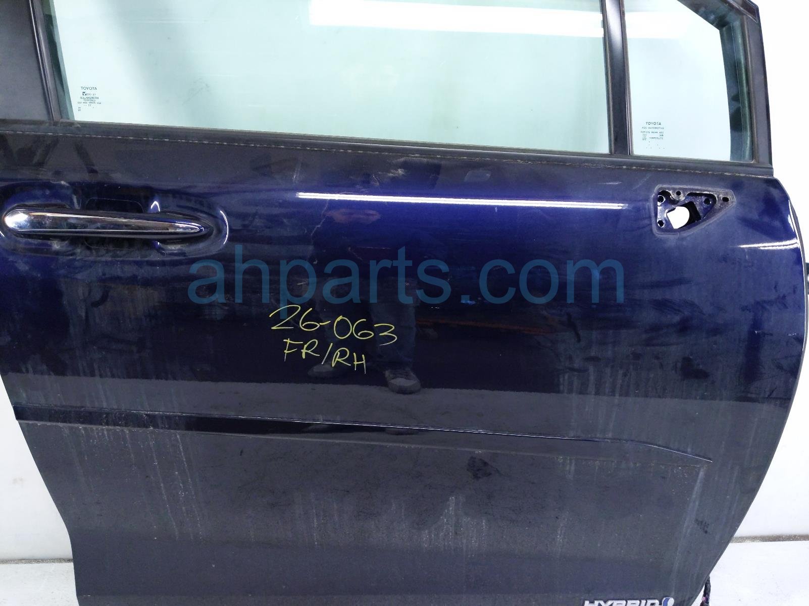 2021 Toyota Sienna front passenger door - blue - no mirror/trim is a used item with a 1 year warranty. This OEM replacement front passenger door - blue - no mirror/trim is genuine and has part numbers 68101-08070, 6810108070, 68125-08010, 6812508010, 69801-08030, 6980108030, 85710-0R010, and 857100R010. This Toyota part is for sale (please call for pricing). This item has the following note: 'This item appears to have some minor scuffs and scratches.'