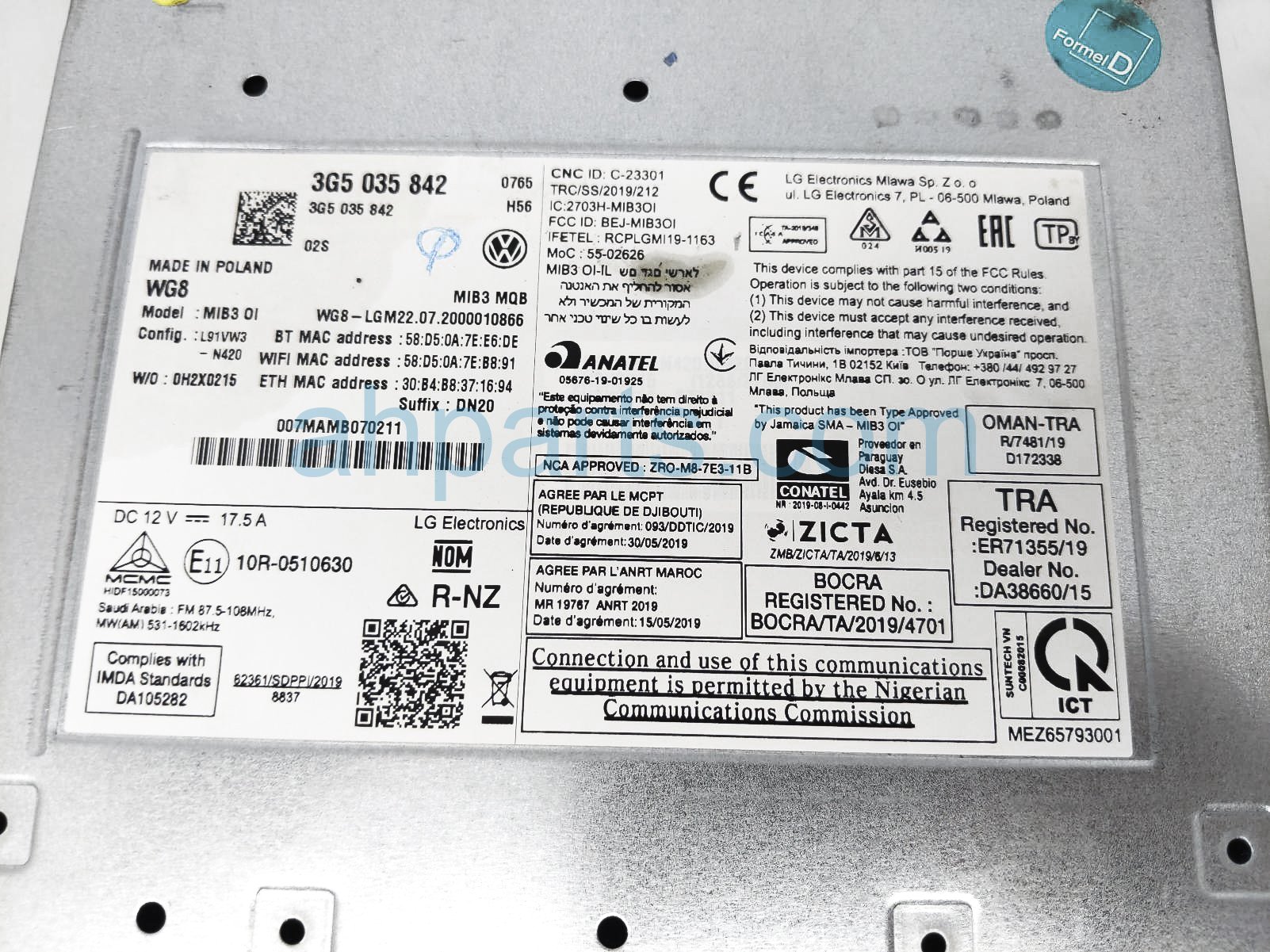 2021 Volkswagen Tiguan navigation control module is a used item with a 1 year warranty. This OEM replacement navigation control module is genuine and has part numbers 3G5-035-842, and 3G5035842. This Volkswagen part sells for $199.