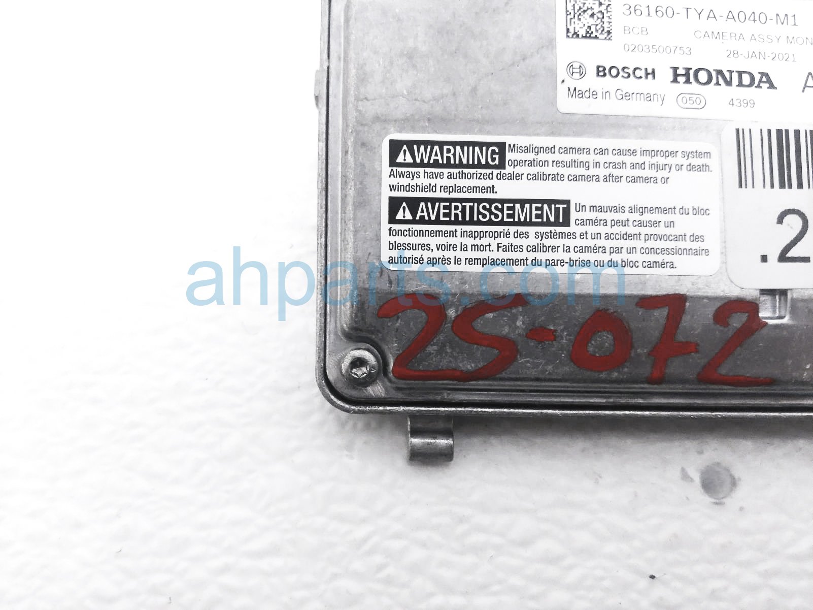 2022 Acura MDX front windshield monocular camera is a used item with a 1 year warranty. This OEM replacement front windshield monocular camera is genuine and has part numbers 36160-TYA-A04, and 36160TYAA04. This Acura part sells for $245.
