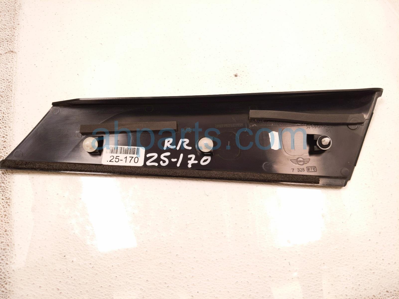 2022 BMW Mini Cooper passenger d-pillar trim molding - blk is a used item with a 1 year warranty. This OEM replacement passenger d-pillar trim molding - blk is genuine and has part numbers 51-13-7-328-876, and 51137328876. This BMW part sells for $25.