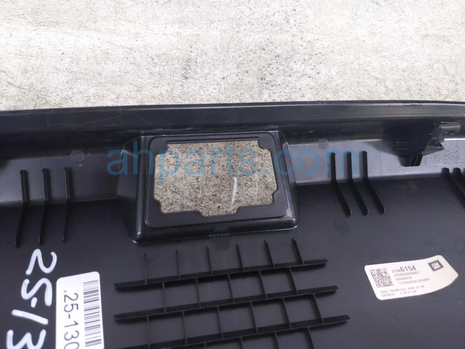 2022 Chevy Malibu trunk cargo scuff trim panel - black is a used item with a 1 year warranty. This OEM replacement trunk cargo scuff trim panel - black is genuine and has part numbers 23366154. This Chevy part sells for $75. This item has the following note: 'Has some scuffs/scratches & a cracked mount tab - grade b.'