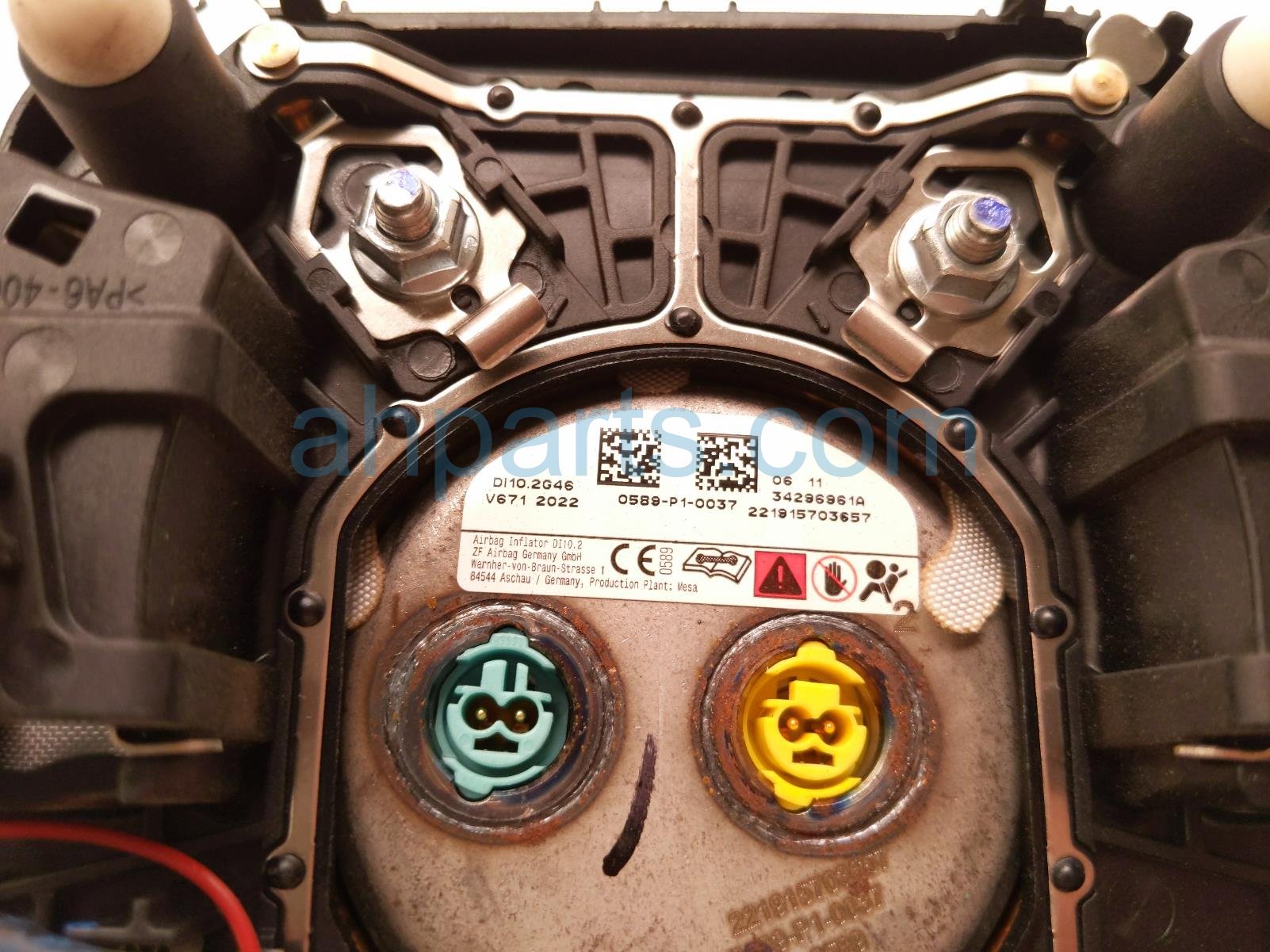 2022 Ford F150 driver wheel airbag - black * is a used item with a 1 year warranty. This OEM replacement driver wheel airbag - black * is genuine and has part numbers ML3Z-15043B13-AA, and ML3Z15043B13AA. This Ford part sells for $495. This item has the following note: 'Has scuffs/scratches on cover - grade b.'