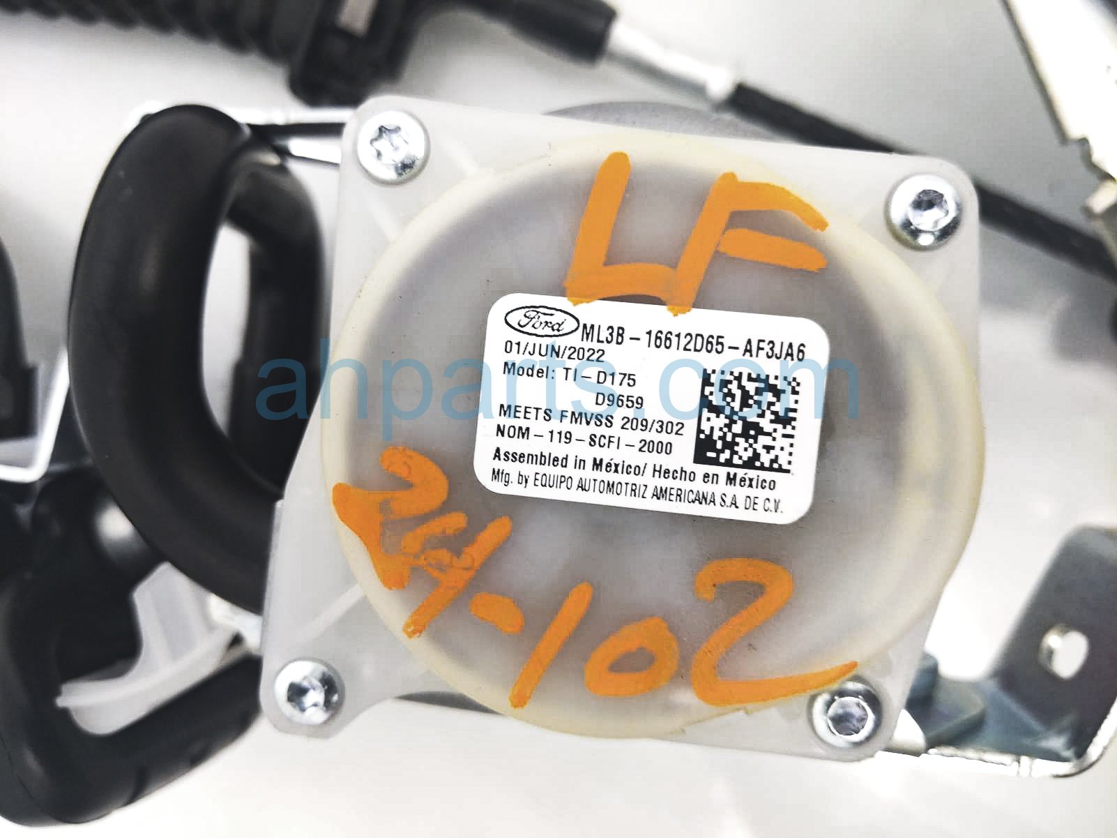 2022 Ford F150 front driver seat belt - black is a used item with a 1 year warranty. This OEM replacement front driver seat belt - black is genuine and has part numbers ML3Z-16611B09-AB, ML3Z16611B09AB, ML3B-16612D65-AF, and ML3B16612D65AF. This Ford part sells for $275.