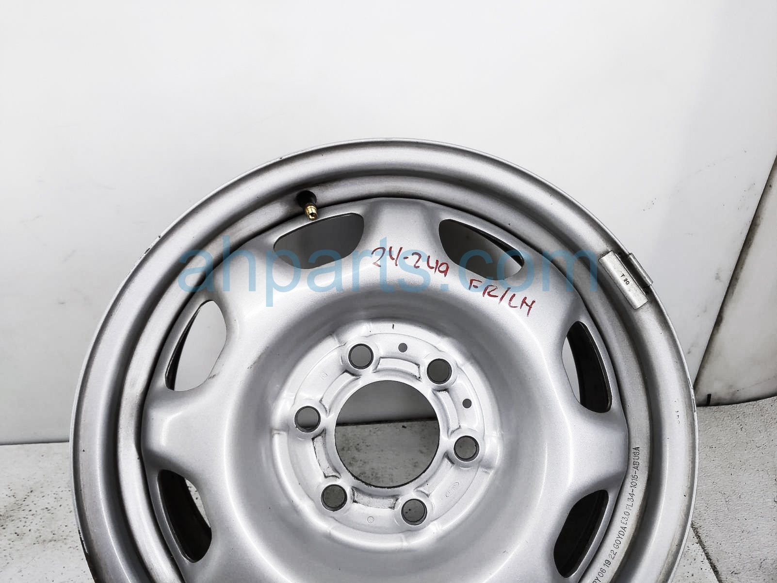 2022 Ford F150 front driver wheel / rim is a used item with a 1 year warranty. This OEM replacement front driver wheel / rim is genuine and has part numbers FL34-1015-AB, FL341015AB, FL3Z-1015-A, and FL3Z1015A. This Ford part sells for $75.