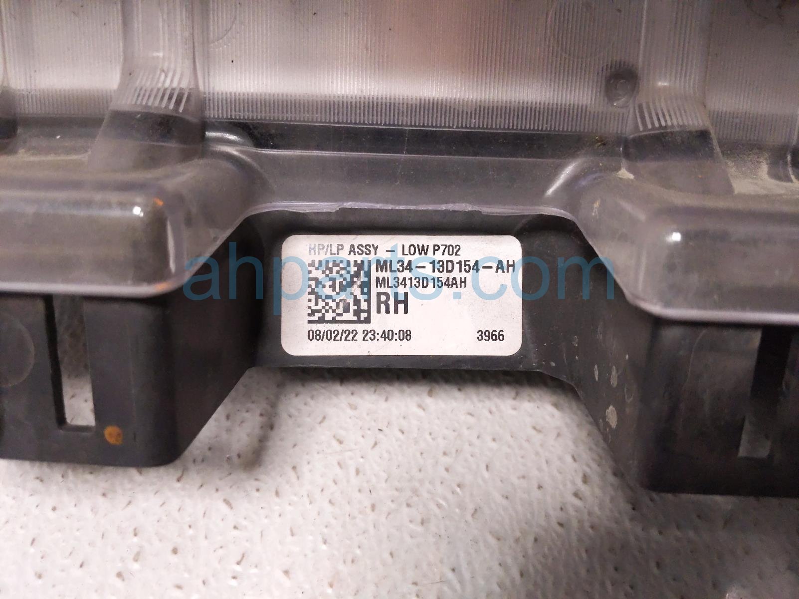 2022 Ford F150 headlight passenger headlamp / light * is a used item with a 1 year warranty. This OEM replacement headlight passenger headlamp / light * is genuine and has part numbers ML3Z-13008-J, and ML3Z13008J. This Ford part sells for $299. This item has the following note: 'Pitting/scratches on lens, has a damaged mount tab & a cracked mount tab - grade c.'