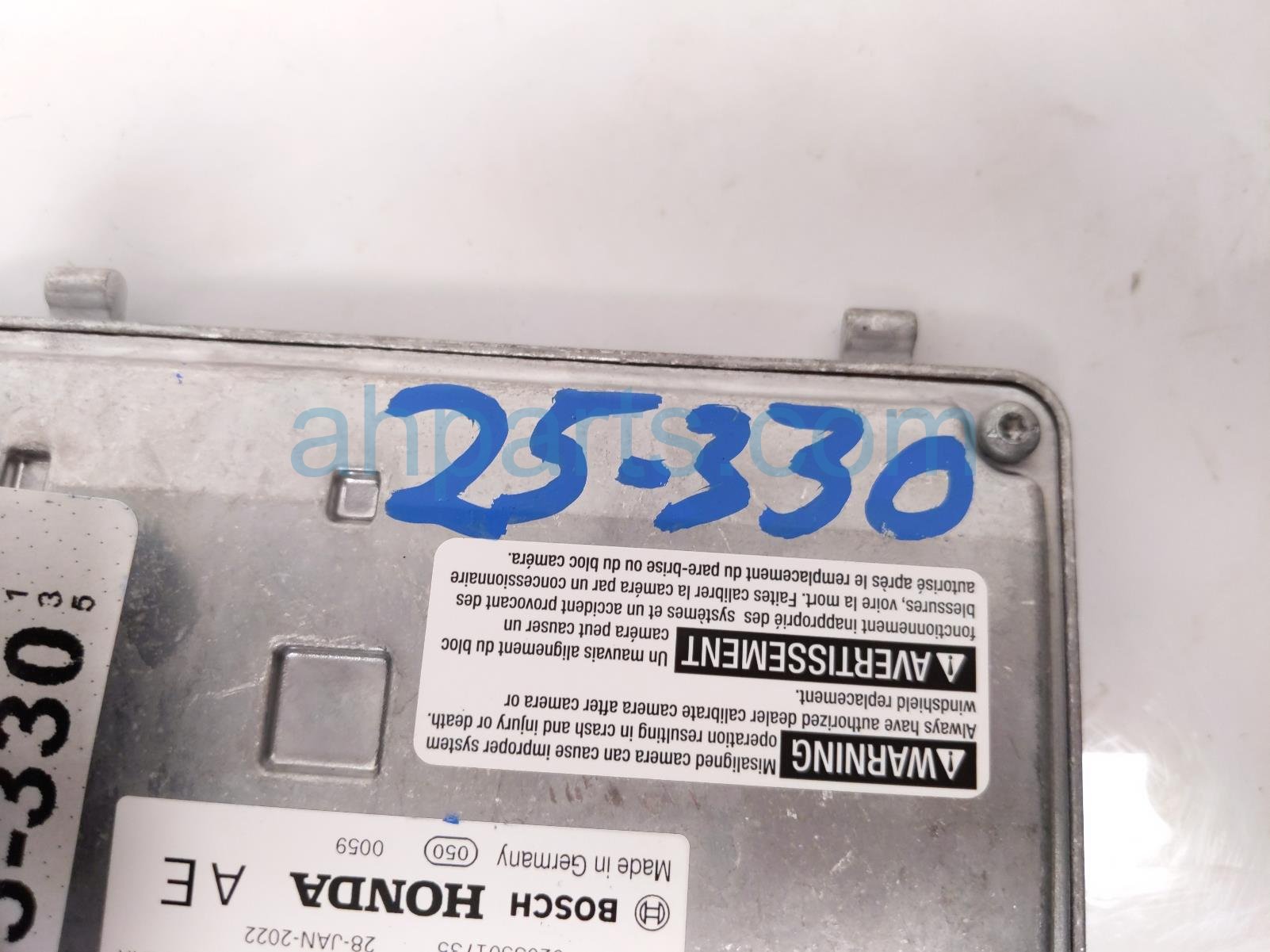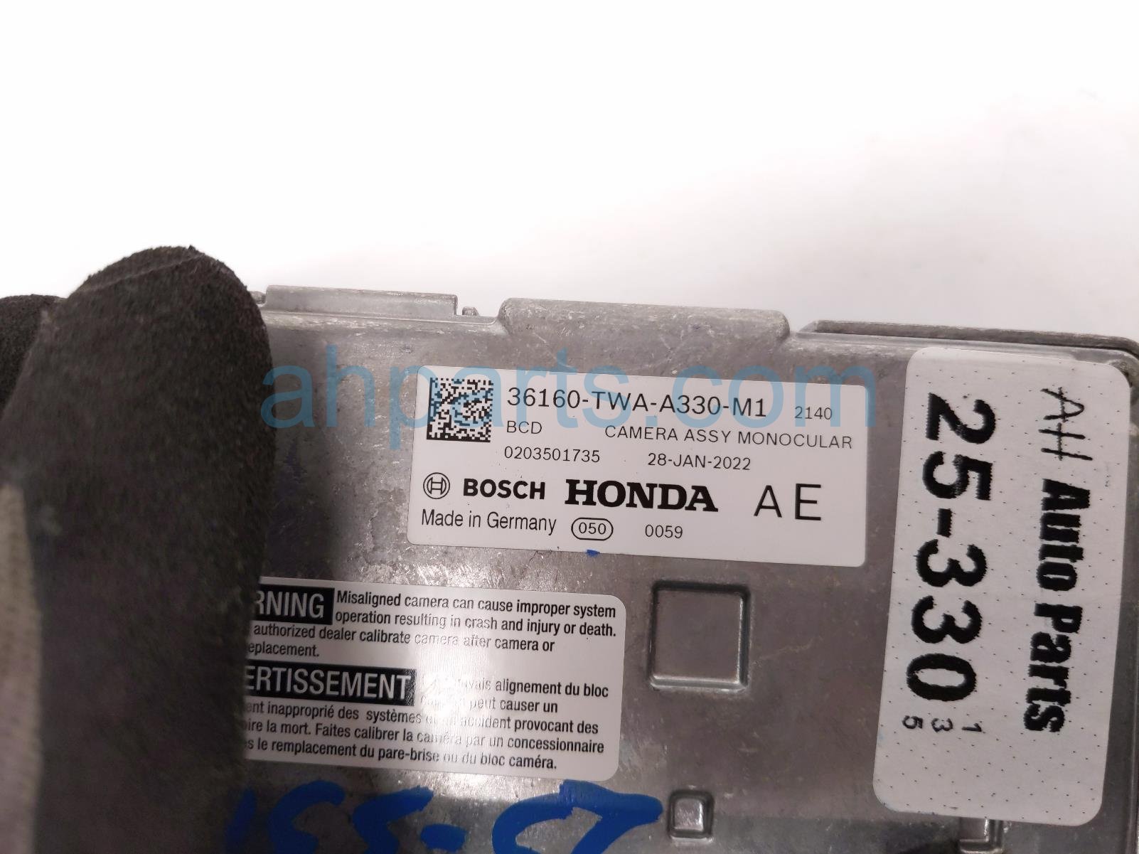 2022 Honda Accord front windshield monocular camera is a used item with a 1 year warranty. This OEM replacement front windshield monocular camera is genuine and has part numbers 36160-TWA-A33, 36160TWAA33, 36163-TWA-C02, and 36163TWAC02. This Honda part is for sale (please call for pricing).