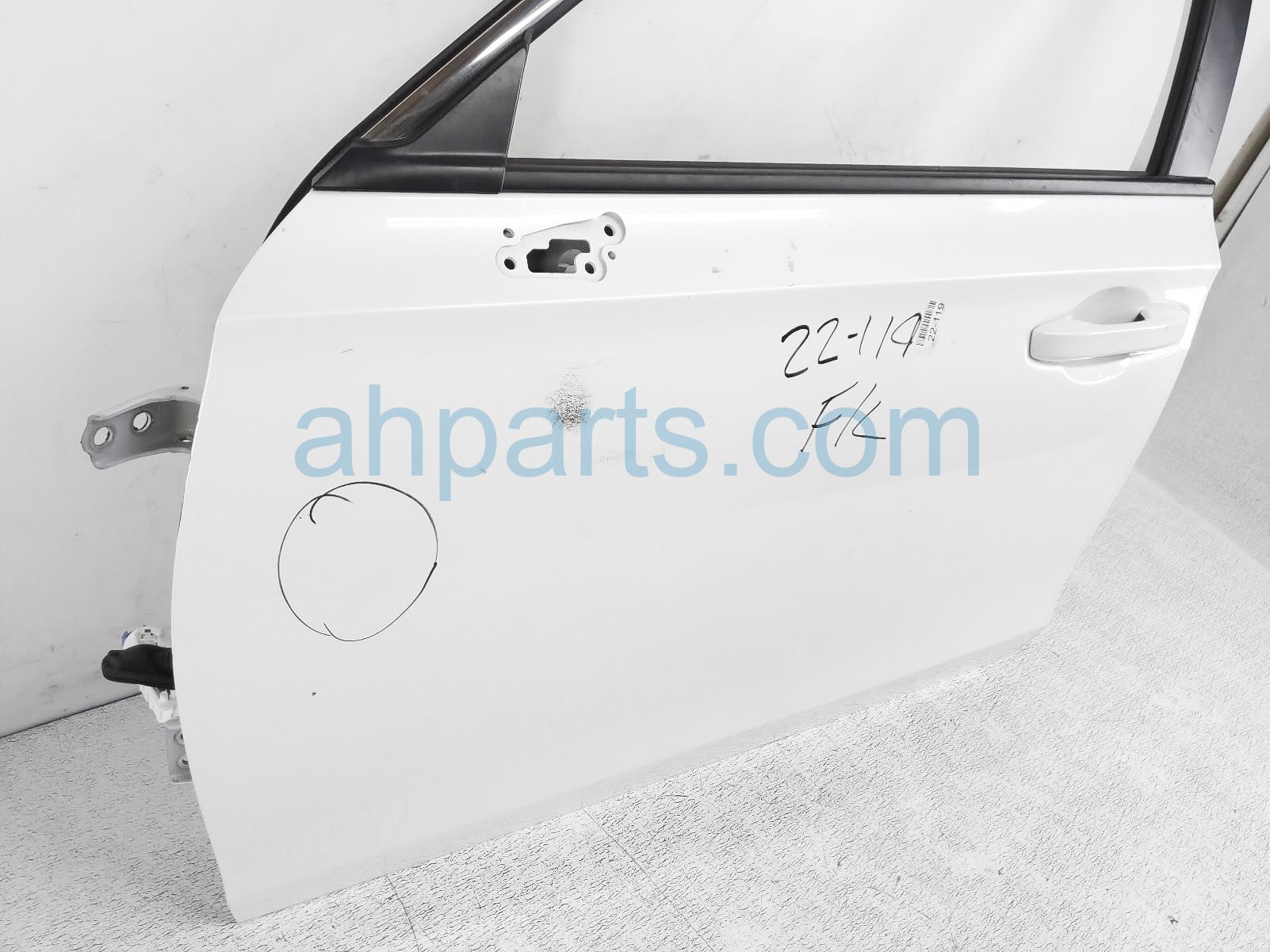2022 Honda Civic front driver door - white - no mirror/trim is a used item with a 1 year warranty. This OEM replacement front driver door - white - no mirror/trim is genuine and has part numbers 67050T20A00ZZ. This Honda part sells for $725. This item has the following note: 'Has a small dent.'
