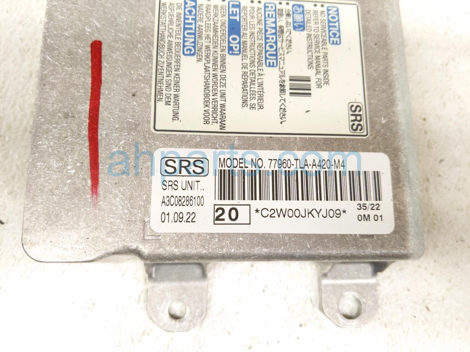 2022 Honda CR-V srs airbag computer - 0 blown ab is a used item with a 1 year warranty. This OEM replacement srs airbag computer - 0 blown ab is genuine and has part numbers 77960-TLA-A42, and 77960TLAA42. This Honda part sells for $250.
