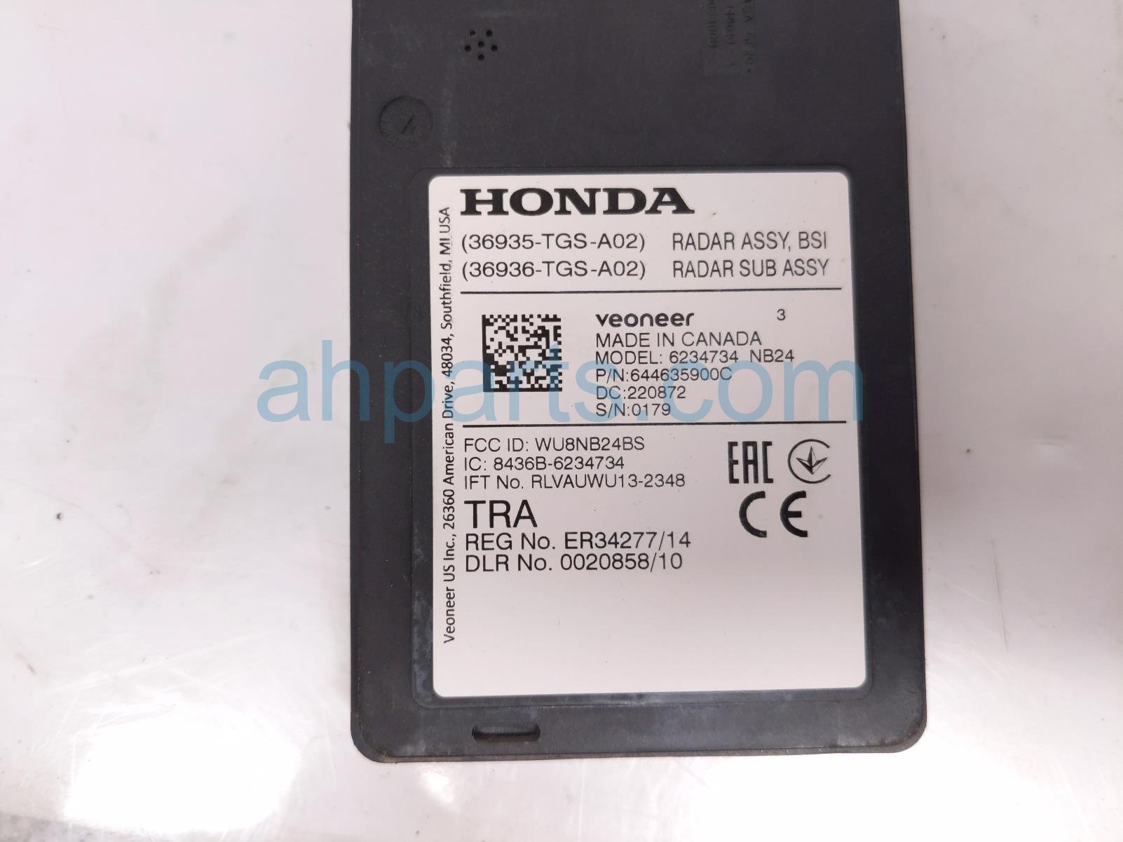 2022 Honda Passport rear driver blind spot radar unit is a used item with a 1 year warranty. This OEM replacement rear driver blind spot radar unit is genuine and has part numbers 36936-TGS-A02, and 36936TGSA02. This Honda part sells for $150.