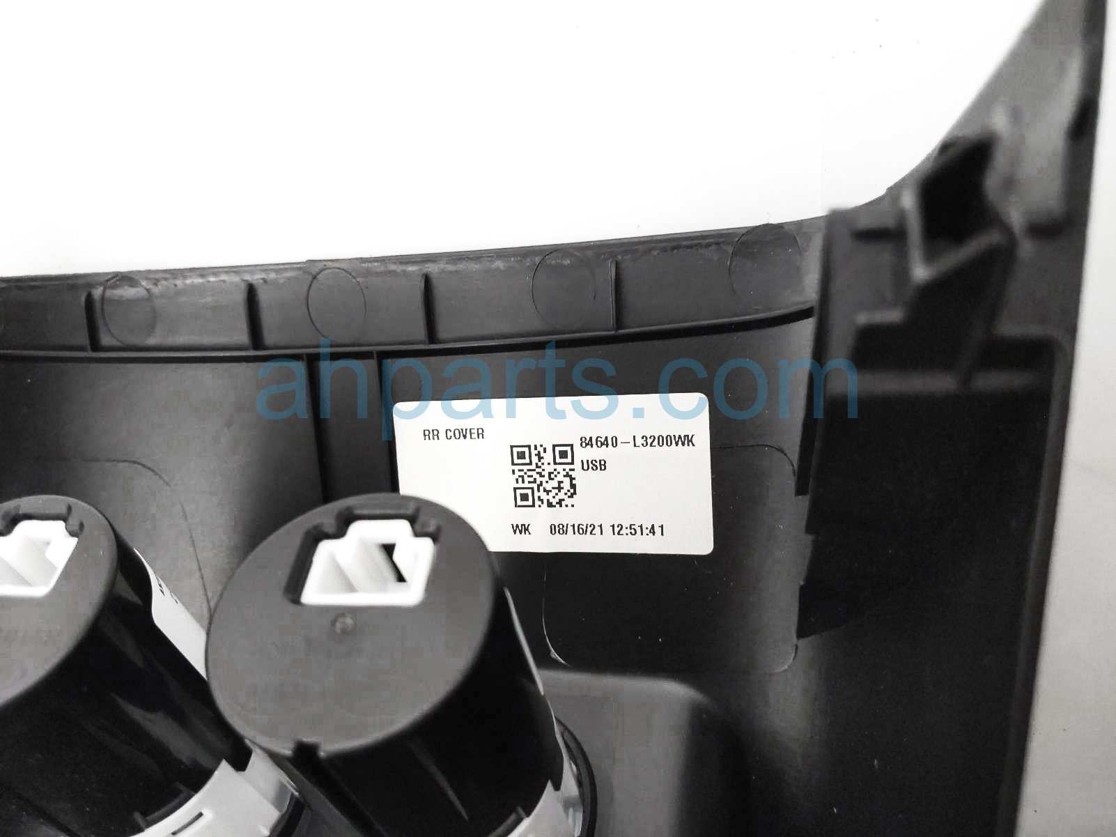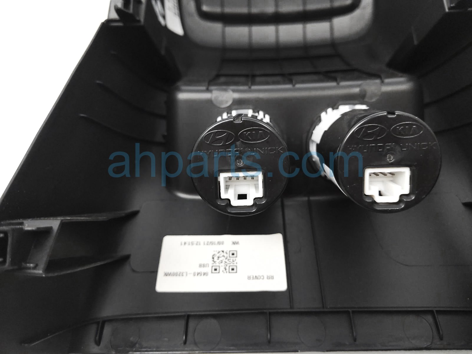 2022 Kia K5 console rear cover panel - black * is a used item with a 1 year warranty. This OEM replacement console rear cover panel - black * is genuine and has part numbers 84640-L3200WK, and 84640L3200WK. This Kia part sells for $99. This item has the following note: 'Has 2 usb charge ports **.'