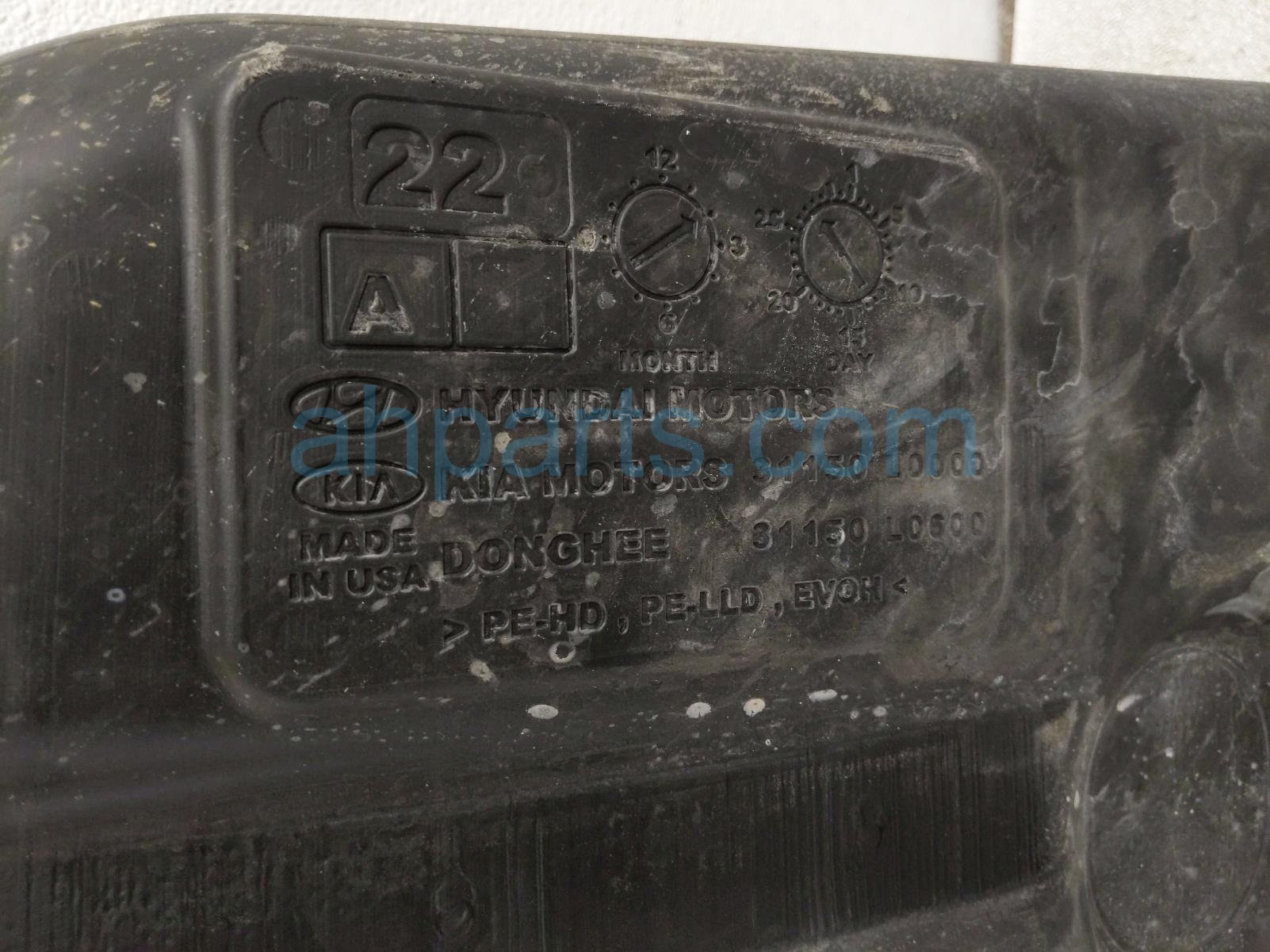 2022 Kia K5 gas / fuel tank is a used item with a 1 year warranty. This OEM replacement gas / fuel tank is genuine and has part numbers 31150-L0600, and 31150L0600. This Kia part sells for $225.