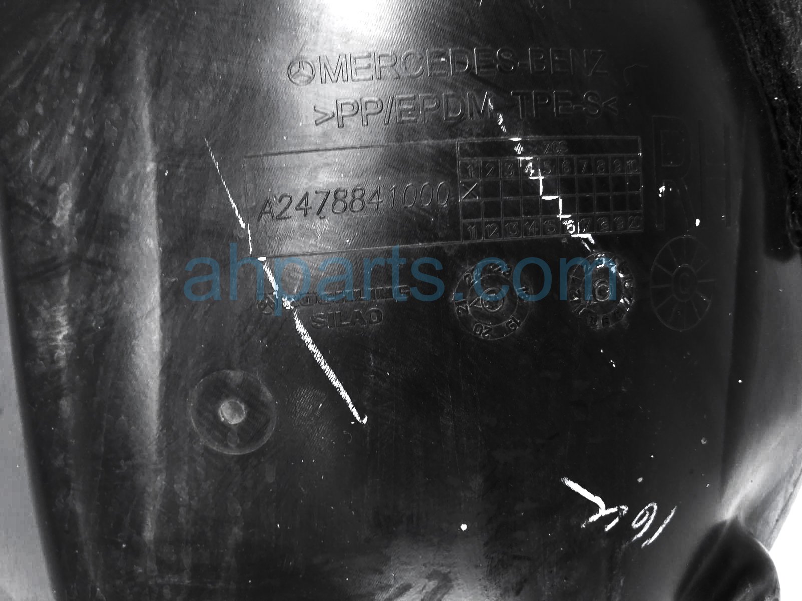 2022 Mercedes GLB250 front passenger rearward inner fender liner is a used item with a 1 year warranty. This OEM replacement front passenger rearward inner fender liner is genuine and has part numbers 247-884-10-00, and 2478841000. This Mercedes part sells for $40.