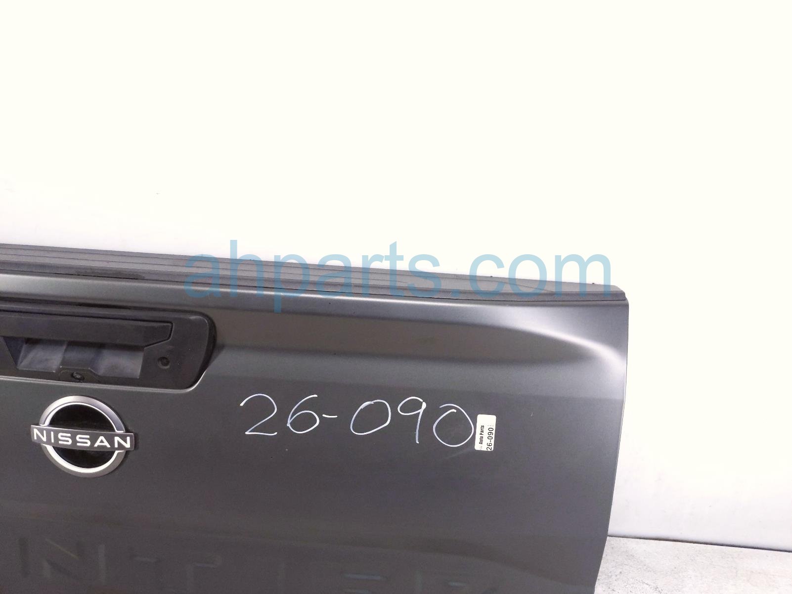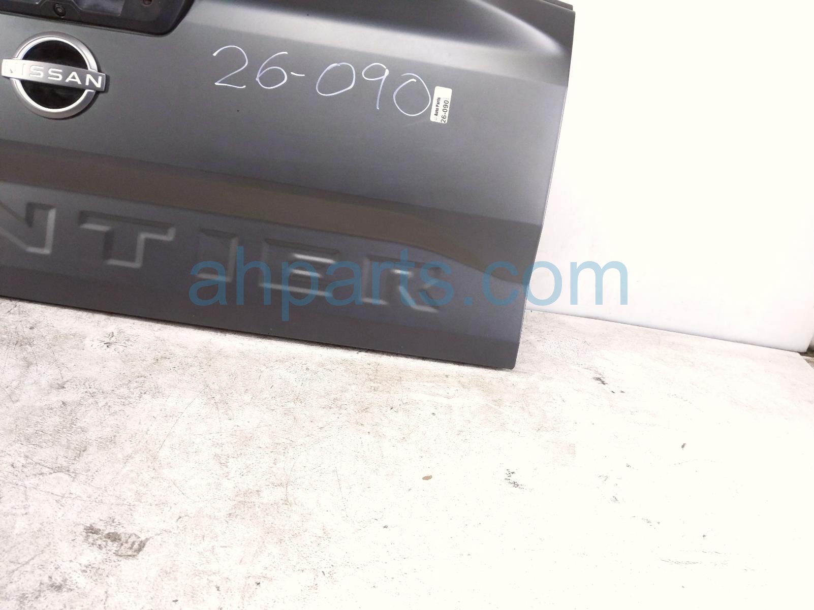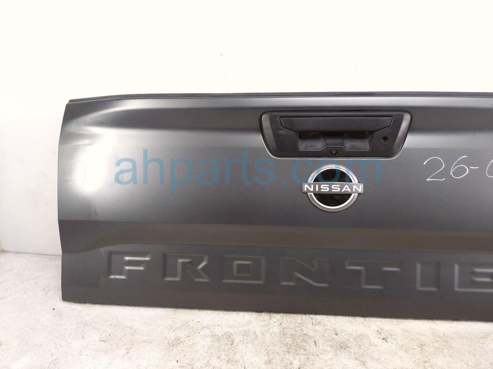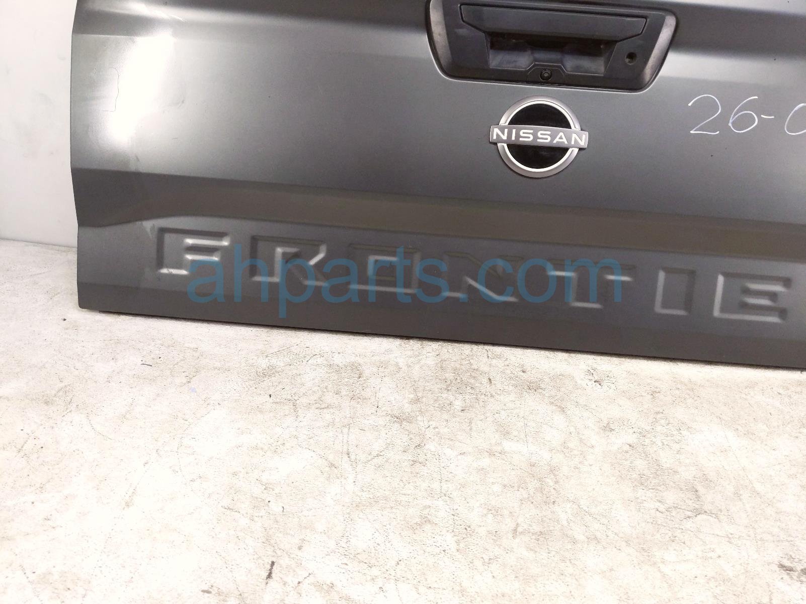 2022 Nissan Frontier deck trunk lid lift gate / tail gate - grey is a used item with a 1 year warranty. This OEM replacement deck trunk lid lift gate / tail gate - grey is genuine and has part numbers 93400-9BY0A, 934009BY0A, 90606-9BU2A, and 906069BU2A. This Nissan part is for sale (please call for pricing). This item has the following note: 'This item has alot of very deep scratches and scuffs.'