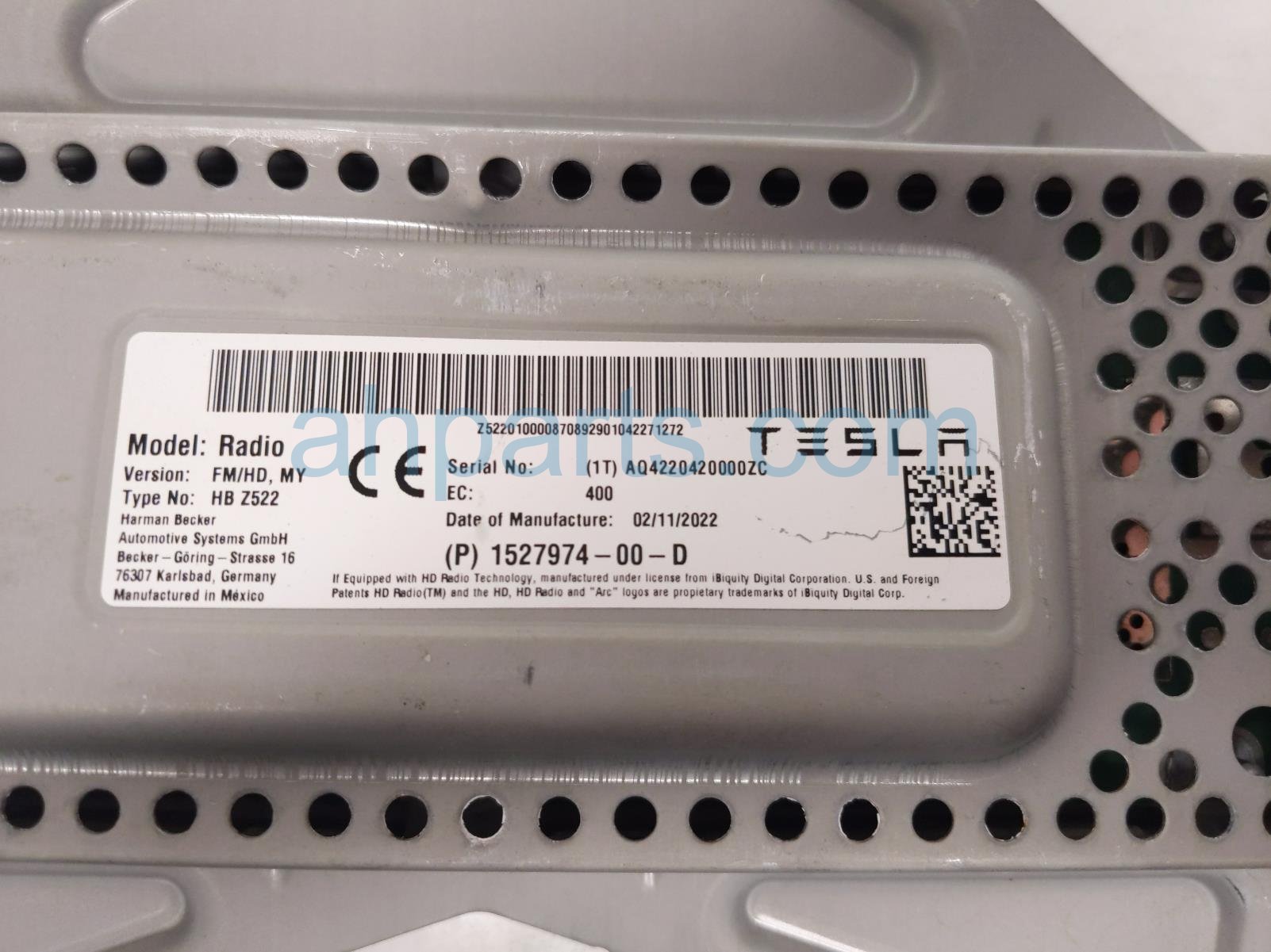 2022 Tesla Tesla Y audio/radio receiver module is a used item with a 1 year warranty. This OEM replacement audio/radio receiver module is genuine and has part numbers 1527974-00-D, and 152797400D. This Tesla part is for sale (please call for pricing).