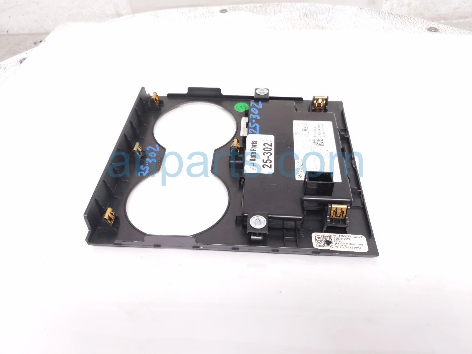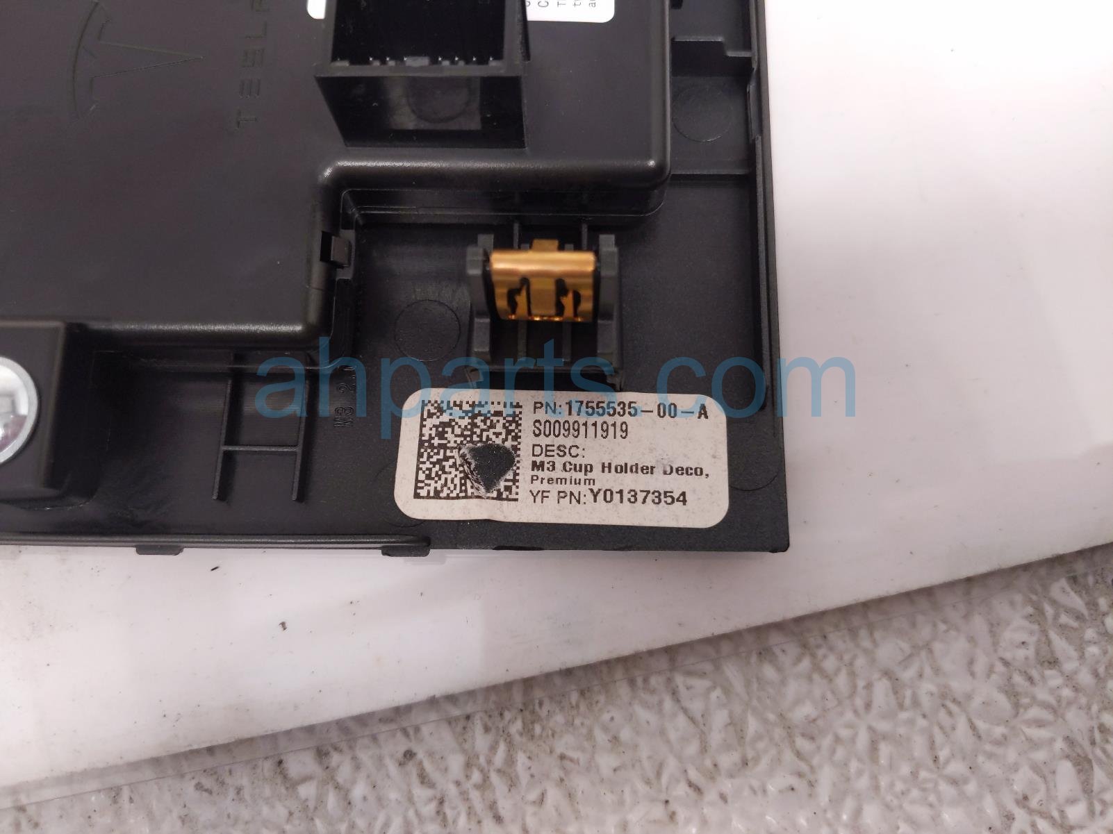 2022 Tesla Tesla Y center console cup hld bezel -blk is a used item with a 1 year warranty. This OEM replacement center console cup hld bezel -blk is genuine and has part numbers 1755535-00-A, and 175553500A. This Tesla part is for sale (please call for pricing).