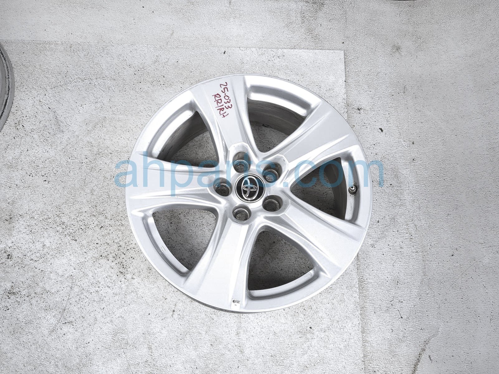 2022 Toyota Highlander rear passenger wheel / rim * is a used item with a 1 year warranty. This OEM replacement rear passenger wheel / rim * is genuine and has part numbers 42611-0E510, and 426110E510. This Toyota part sells for $175. This item has the following note: 'Minor rub on edge lip - grade a.'