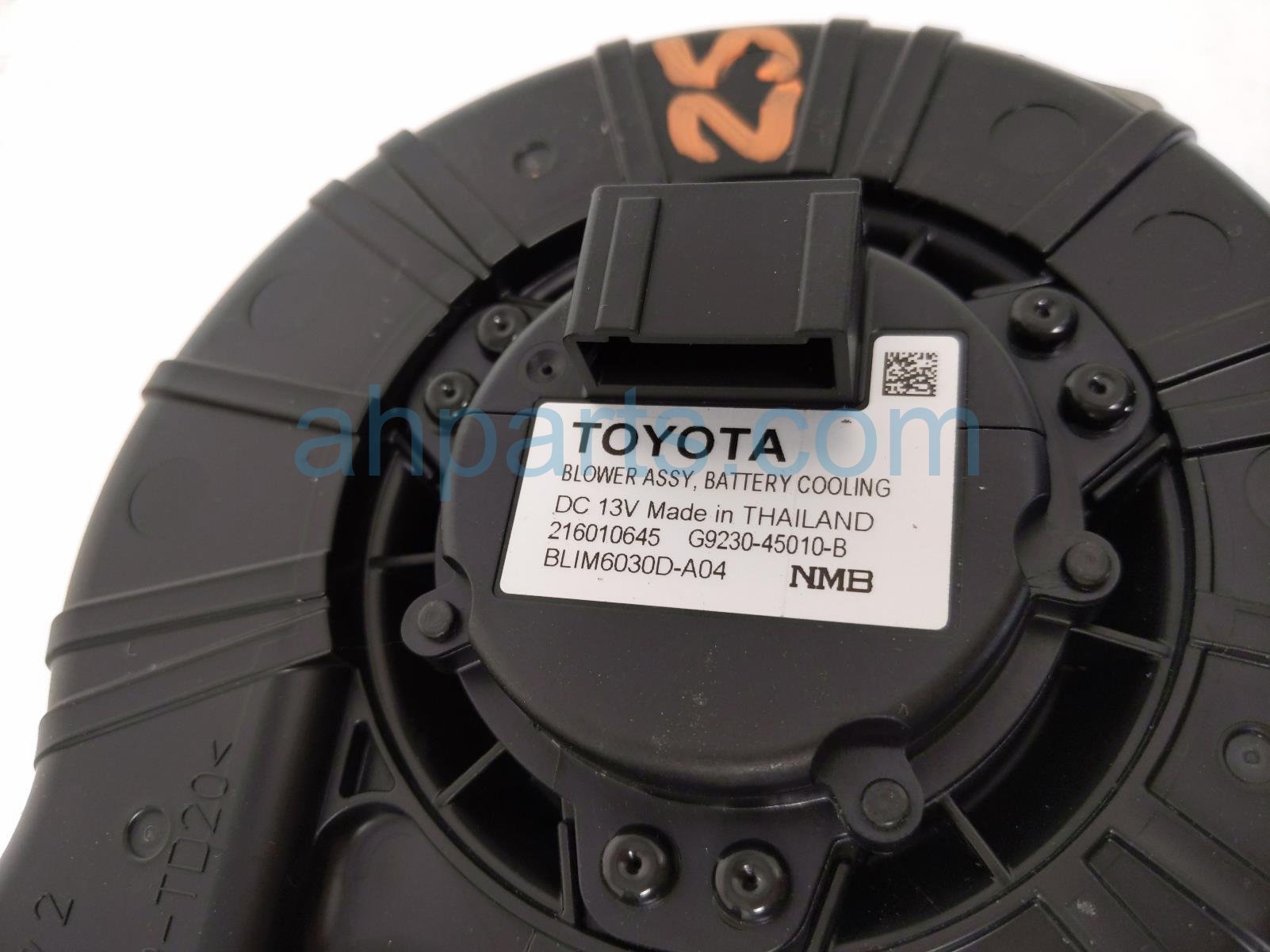2022 Toyota Sienna air motor passenger battery cooling blower assy is a used item with a 1 year warranty. This OEM replacement air motor passenger battery cooling blower assy is genuine and has part numbers G9230-45020, G923045020, G9230-45010-B, and G923045010B. This Toyota part is for sale (please call for pricing).