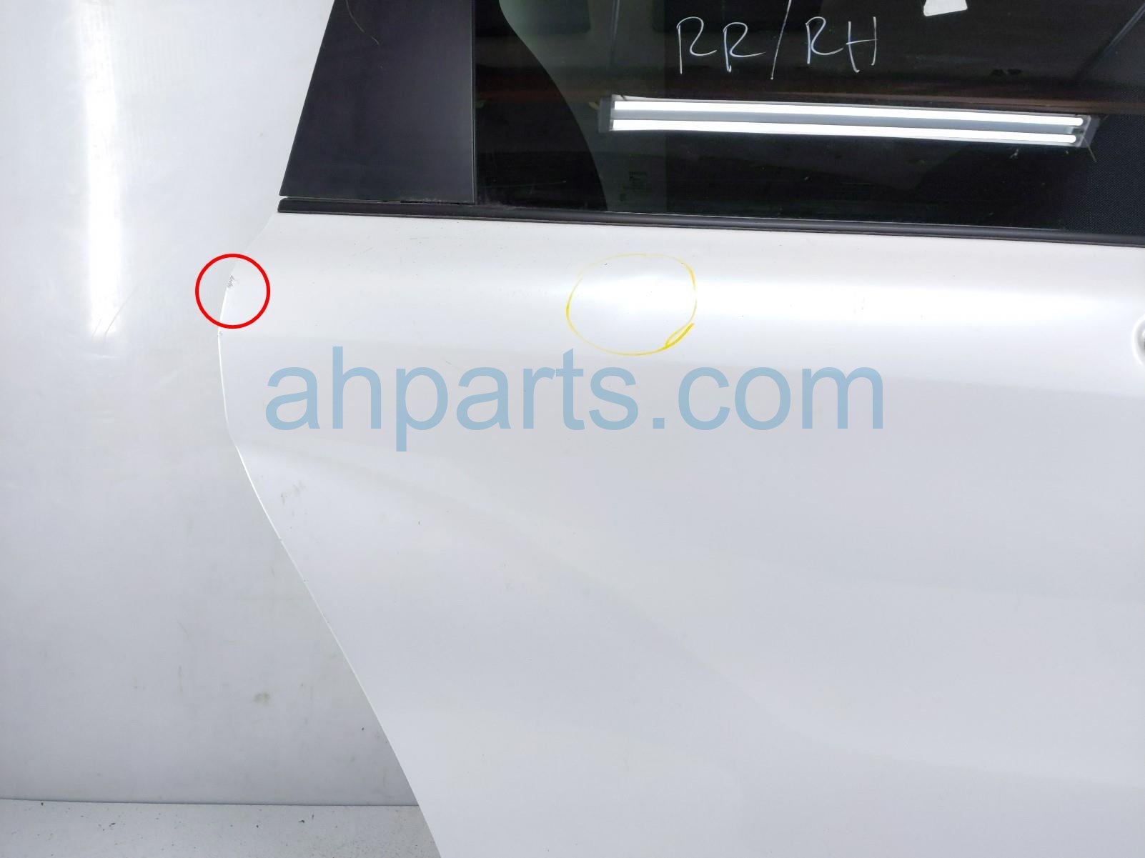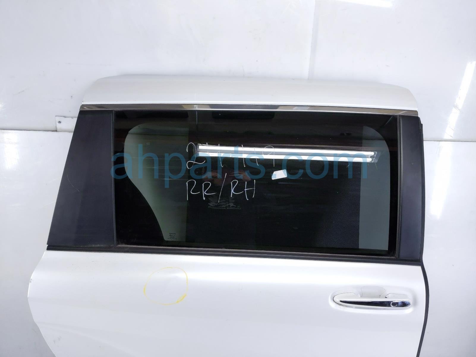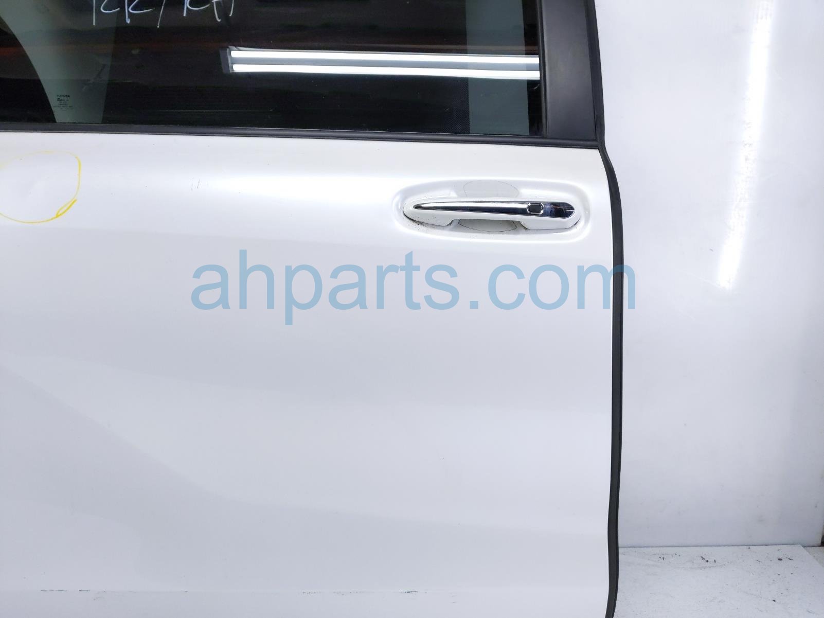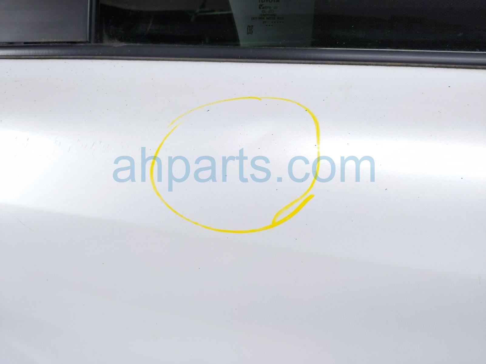 2022 Toyota Sienna rear passenger door - white - no inside trim is a used item with a 1 year warranty. This OEM replacement rear passenger door - white - no inside trim is genuine and has part numbers 67003-08180, 6700308180, 82153-08270, 8215308270, 69200-08042, 6920008042, 69070-08120-B0, 6907008120B0, 69803-08030, 6980308030, 85710-08070, 8571008070, 85005-08051, and 8500508051. This Toyota part sells for $1500. This item has the following note: 'This item has some minor scuffs, a ding on the bottom of the door, and a dent on the circled area.'