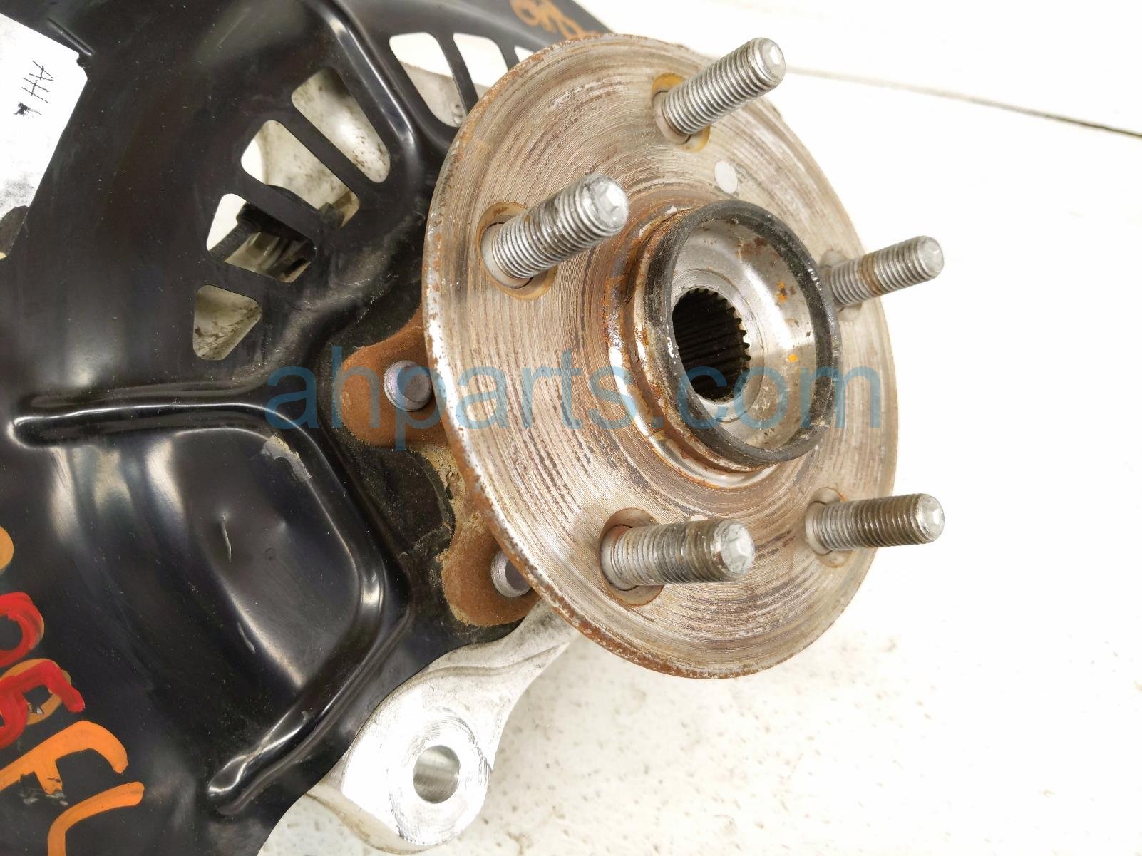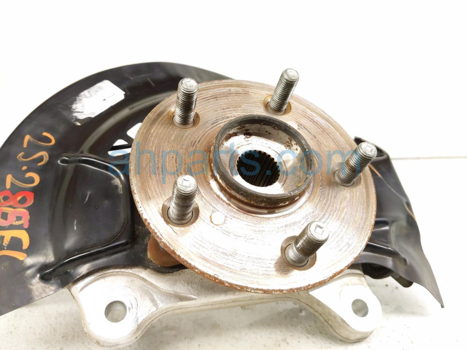 2022 Toyota Venza front driver spindle knuckle w/hub is a used item with a 1 year warranty. This OEM replacement front driver spindle knuckle w/hub is genuine and has part numbers 43202-42010, 4320242010, 43550-33070, and 4355033070. This Toyota part sells for $225. This item has the following note: 'Has dented dust shield.'