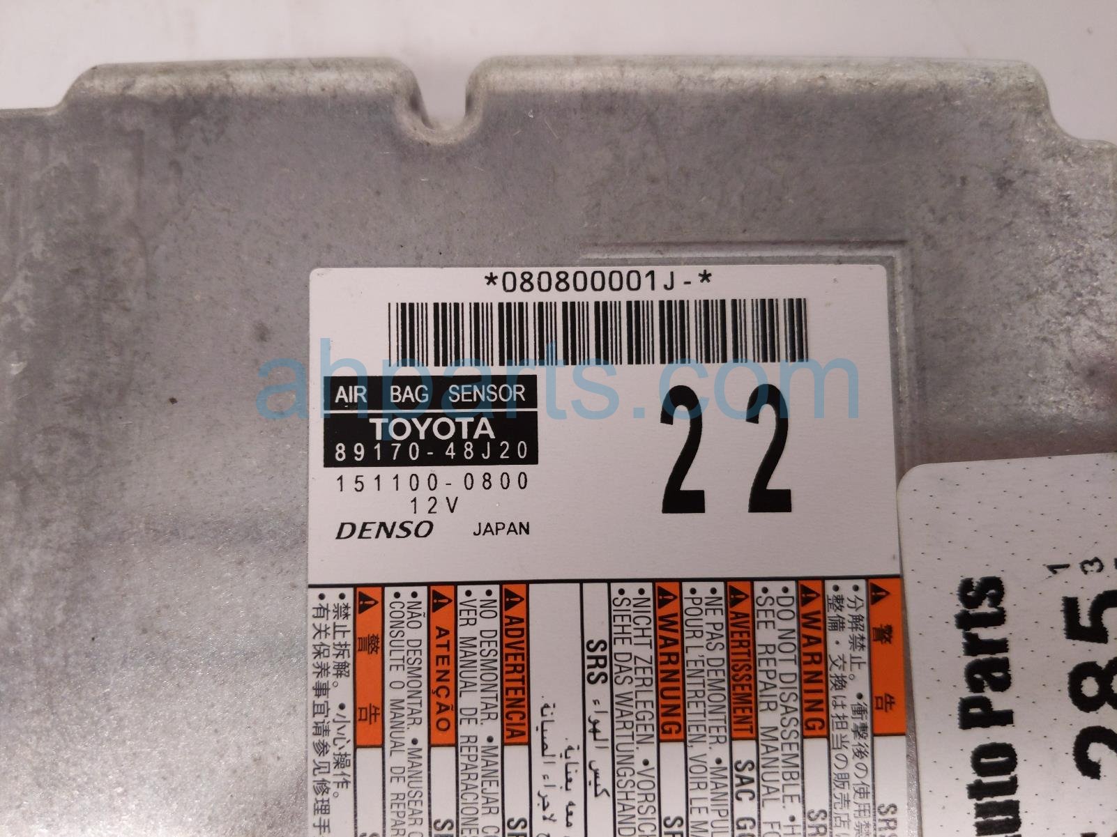 2022 Toyota Venza srs airbag computer - 0 blown ab is a used item with a 1 year warranty. This OEM replacement srs airbag computer - 0 blown ab is genuine and has part numbers 89170-48J20, and 8917048J20. This Toyota part is for sale (please call for pricing).