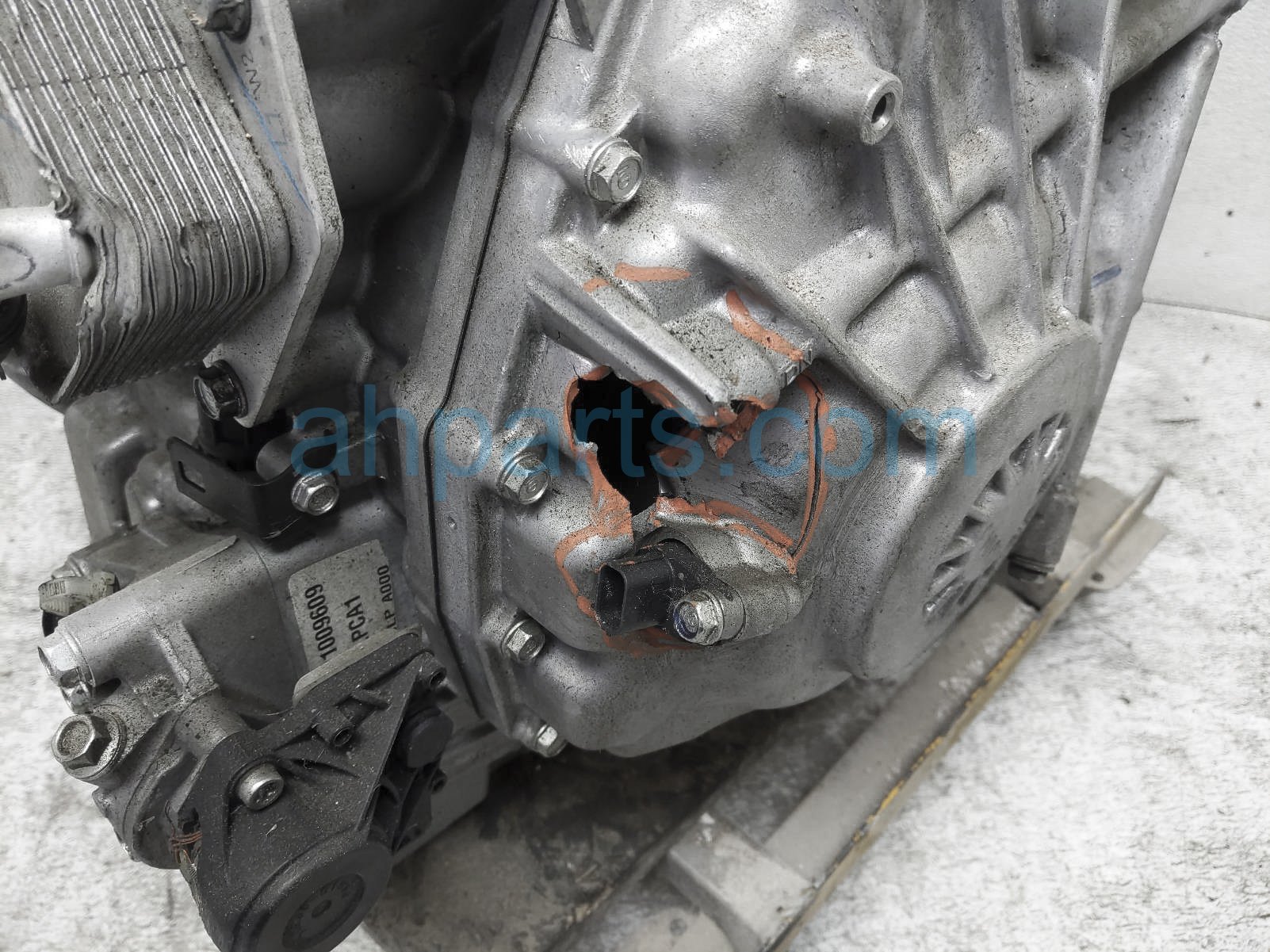 The transmission cooler on this item has been dented inward a little which needs to be replaced and also has a crack on the transmission cover - grade c.